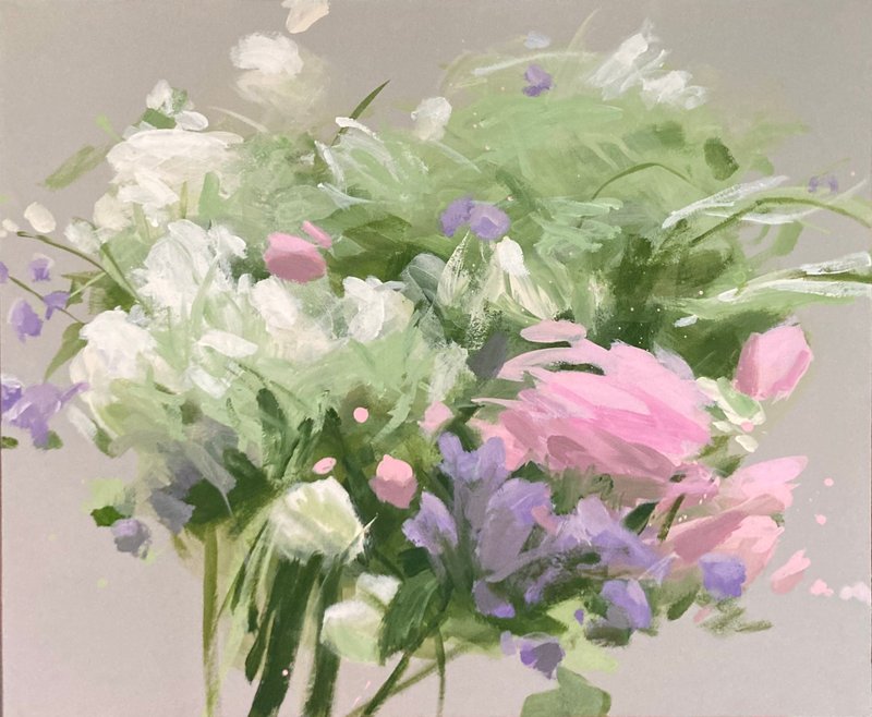 이창분 작가의 영감은 자연으로부터 얻어진다. 삶에서 마주하는 자연 풍경과 다양한 생명체들을 간결한 붓 터치와 선명한 색감을 사용하여 추상적 이미지로 표현한다. 바탕에 칠해진 색 위로 화이트가 겹겹이 칠해진다. 이는 대상이 지워지는 과정 같으나, 하얗게 남은 화면은 마치 빛으로 덮인 듯이 보이기도 한다. 자연에서 얻은 찰나의 순간들은 저마다의 형태를 갖추어 예술 작품이 되어간다. 형태를 과감히 삭제함으로써 감정은 절제되어 표현된다. 따라서 화면 전체에서 느껴지는 단순미가 작품을 더욱 돋보이게 한다. 흰 여백은 평화로운 분위기를 형성한다. 꽃잎 같기도 나뭇잎 같기도 한 존재들이 구름처럼 고요히 흘러가고 있다. 차분하지만 그 안에는 강렬한 생명의 기운이 들어있다. 작가는 작품을 마주하는 이들을 위한 치유와 위로의 메시지를 담아두었다.