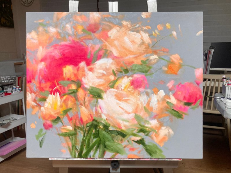이창분 작가의 영감은 자연으로부터 얻어진다. 삶에서 마주하는 자연 풍경과 다양한 생명체들을 간결한 붓 터치와 선명한 색감을 사용하여 추상적 이미지로 표현한다. 바탕에 칠해진 색 위로 화이트가 겹겹이 칠해진다. 이는 대상이 지워지는 과정 같으나, 하얗게 남은 화면은 마치 빛으로 덮인 듯이 보이기도 한다. 자연에서 얻은 찰나의 순간들은 저마다의 형태를 갖추어 예술 작품이 되어간다. 형태를 과감히 삭제함으로써 감정은 절제되어 표현된다. 따라서 화면 전체에서 느껴지는 단순미가 작품을 더욱 돋보이게 한다. 흰 여백은 평화로운 분위기를 형성한다. 꽃잎 같기도 나뭇잎 같기도 한 존재들이 구름처럼 고요히 흘러가고 있다. 차분하지만 그 안에는 강렬한 생명의 기운이 들어있다. 작가는 작품을 마주하는 이들을 위한 치유와 위로의 메시지를 담아두었다.