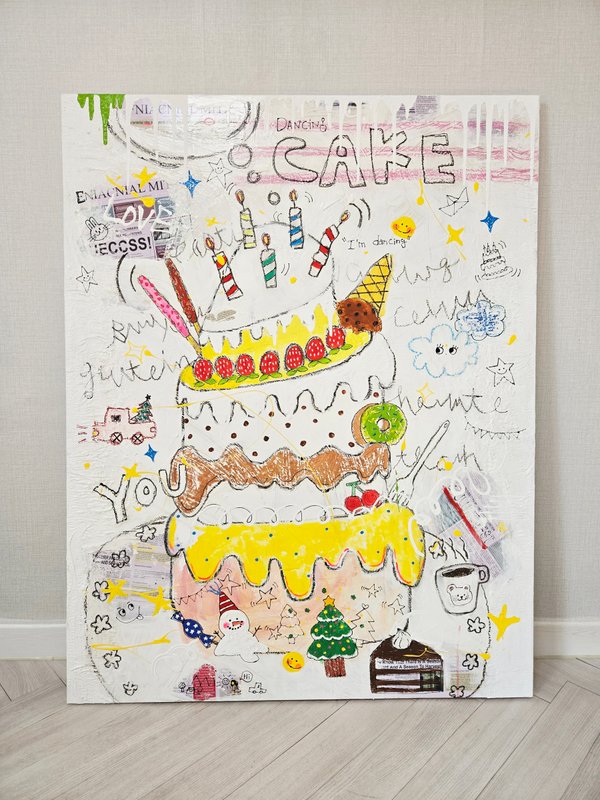 동화책을 펼친 듯, 천진난만한 동심이 가득 느껴지는 작품입니다. 작가는 유년 시절 상상의 나래를 충분히 펼치지 못함으로 인해 느끼는 갈증을 해소하고자 자신의 작업이 시작되었을 것이라고 설명한다. 화면 속에는 우리에게 익숙한 동화의 장면들과 캐릭터가 겹쳐 그려져 있다. 즉흥적으로 캔버스 위를 채워 나가는 작업 방식은 더욱 독특하고 개성 있는 상상의 세계를 만들어 낸다. 유년 시절의 감각을 되살려 그려진 작품은 아이처럼 엉뚱하지만, 그 기발함에 웃음이 지어진다. 작품 속에는 구불구불한 낙서가 관찰된다. 낙서는 정돈되지 않아 거칠지만, 특유의 순수함을 갖는다. 주된 재료인 오일파스텔의 부드러운 질감은 작품의 분위기를 포근하게 만들어준다. 마치 오래전에 그렸던 그림을 꺼내 보듯 향수와 그리움이 느껴지기도 한다.