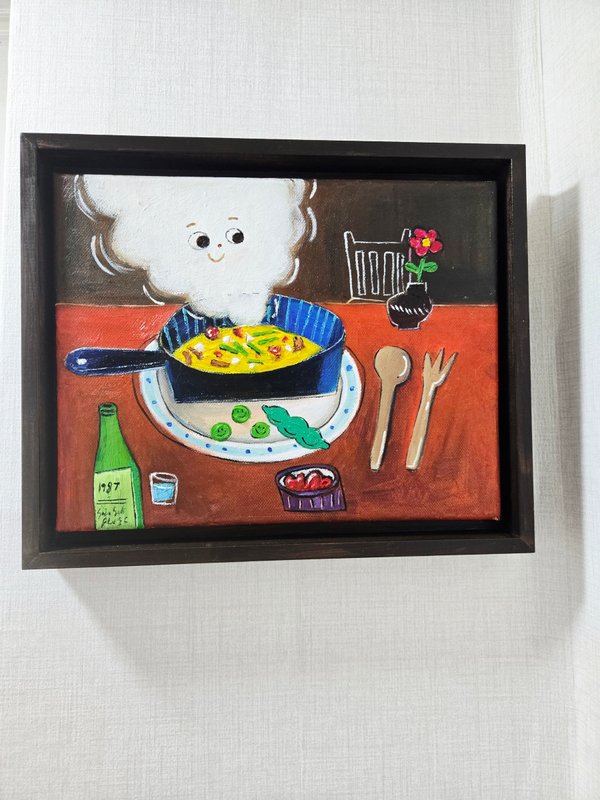 동화책을 펼친 듯, 천진난만한 동심이 가득 느껴지는 작품입니다. 작가는 유년 시절 상상의 나래를 충분히 펼치지 못함으로 인해 느끼는 갈증을 해소하고자 자신의 작업이 시작되었을 것이라고 설명한다. 화면 속에는 우리에게 익숙한 동화의 장면들과 캐릭터가 겹쳐 그려져 있다. 즉흥적으로 캔버스 위를 채워 나가는 작업 방식은 더욱 독특하고 개성 있는 상상의 세계를 만들어 낸다. 유년 시절의 감각을 되살려 그려진 작품은 아이처럼 엉뚱하지만, 그 기발함에 웃음이 지어진다. 작품 속에는 구불구불한 낙서가 관찰된다. 낙서는 정돈되지 않아 거칠지만, 특유의 순수함을 갖는다. 주된 재료인 오일파스텔의 부드러운 질감은 작품의 분위기를 포근하게 만들어준다. 마치 오래전에 그렸던 그림을 꺼내 보듯 향수와 그리움이 느껴지기도 한다.