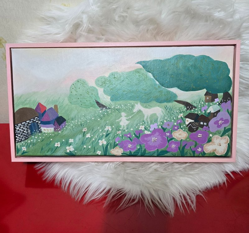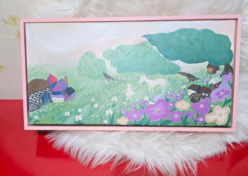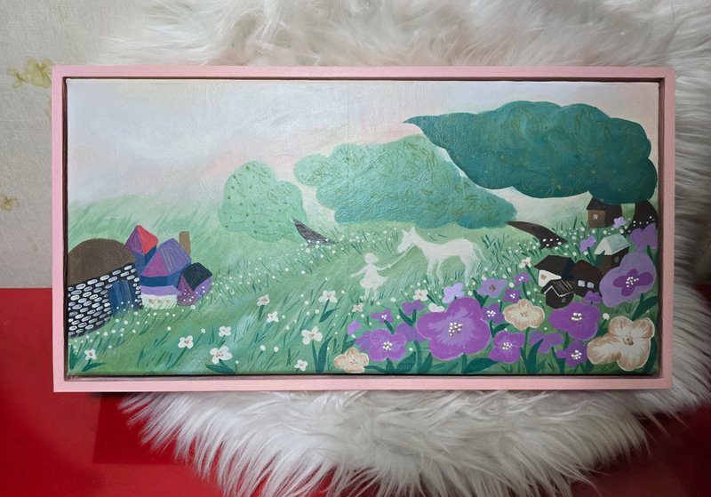 다채로운 색감이 특징인 조수빈 작가의 작품을 보면 긍정적인 희망으로 가득 차 있는 세계에 들어온 것 같은 효과를 느낄 수 있습니다. 캔버스 속 아무런 걱정 근심도 없어 보이는 대상은 아이러니하게도 현실에 대한 불안과 고민에서 벗어나고자 시작한 작가의 붓질에서 비롯되었습니다. 작가는 한때 매섭게 밀려오는 불안함에 잠시 세상과 타협해 붓을 내려놓고 평범한 직장인 생활을 택한 적이 있습니다. 각자에게 주어진 역할들을 해내며 살아가고 있다고 스스로를 위로해 보았지만, 작가의 마음에는 채워지지 않는 공허함이 존재했고, 다시 그림을 그리기 위해 붓을 잡았습니다. 그러자 그리는 행위를 통하여 수많은 걱정, 잡념 그리고 그토록 답답해하던 미래에 대한 걱정들로부터 해방되는 경험을 하였습니다. 누구나 느끼는 현재와 미래에 대한 불안은 잠시 잊고 순수했던 유년기 모습을 그린 이 작품을 감상하며 여유를 느껴보시면 어떨까요?