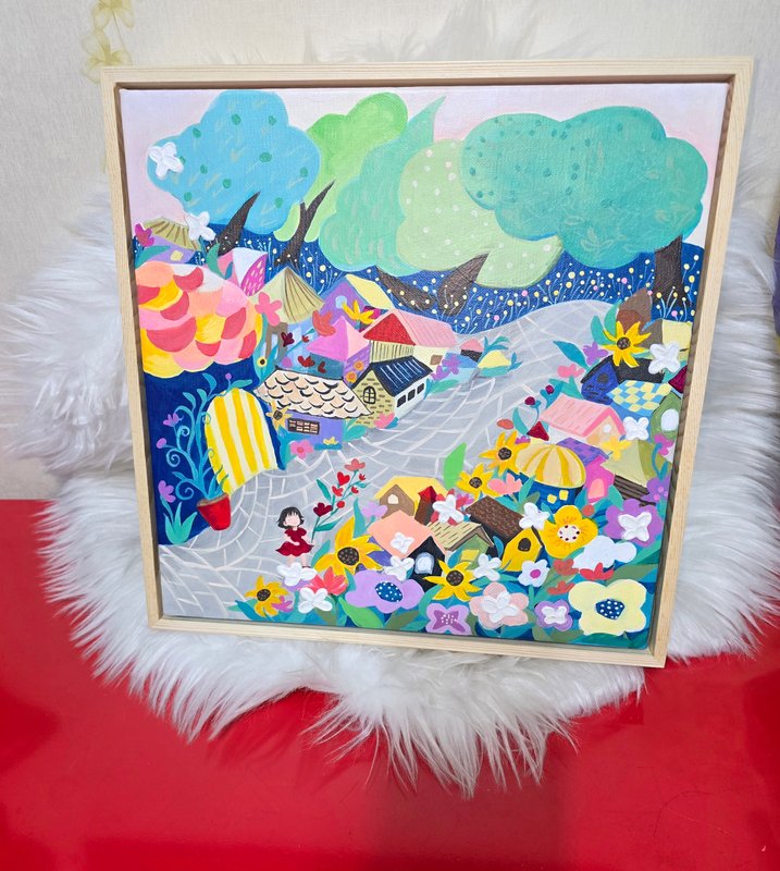 다채로운 색감이 특징인 조수빈 작가의 작품을 보면 긍정적인 희망으로 가득 차 있는 세계에 들어온 것 같은 효과를 느낄 수 있습니다. 캔버스 속 아무런 걱정 근심도 없어 보이는 대상은 아이러니하게도 현실에 대한 불안과 고민에서 벗어나고자 시작한 작가의 붓질에서 비롯되었습니다. 작가는 한때 매섭게 밀려오는 불안함에 잠시 세상과 타협해 붓을 내려놓고 평범한 직장인 생활을 택한 적이 있습니다. 각자에게 주어진 역할들을 해내며 살아가고 있다고 스스로를 위로해 보았지만, 작가의 마음에는 채워지지 않는 공허함이 존재했고, 다시 그림을 그리기 위해 붓을 잡았습니다. 그러자 그리는 행위를 통하여 수많은 걱정, 잡념 그리고 그토록 답답해하던 미래에 대한 걱정들로부터 해방되는 경험을 하였습니다. 누구나 느끼는 현재와 미래에 대한 불안은 잠시 잊고 순수했던 유년기 모습을 그린 이 작품을 감상하며 여유를 느껴보시면 어떨까요?