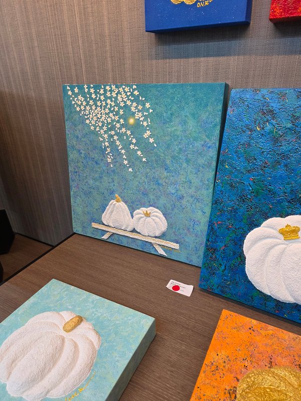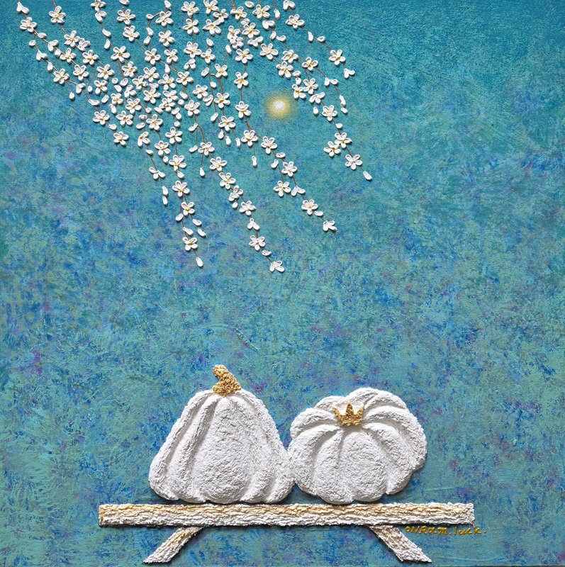 '한 줌의 복, 하나의 사랑, 그리고 하나의 호박.' 온람 작가의 '호박 시리즈'는 소박한 일상에서 출발해, 가장 깊은 내면적 의미인 '태초의 사랑'으로 이끕니다. 둥글게 품은 호박의 형상은 엄마의 자궁처럼 포근하고 안전한 공간을 상징하며, 그 안에는 가족, 연인, 삶의 시작이 담겨 있습니다. 작가는 한지와 전통 재료의 질감을 통해 감정의 결을 꾹꾹 눌러 화면에 새기고, 그 위에 스며든 색채로 순간의 감정을 포착합니다. 황금빛으로 빛나는 호박은 생명의 근원이며, 마음을 감싸는 따뜻한 안식처입니다. 빛과 별, 달의 몽환적 요소들은 그 호박을 더욱 신비롭게 감싸며, 감상자에게는 자신만의 안온한 내면 공간을 만들어갈 공간을 제공합니다. 경쟁과 피로 속에서 우리는 얼마나 자주 안식을 꿈꾸는지요. 온람 작가의 호박 하나가, 당신에게 작은 위로와 복이 되길 바랍니다.