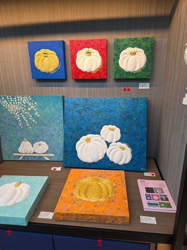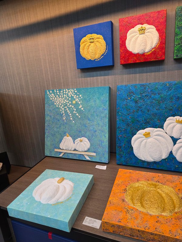 온람 작가의 '황금 호박' 시리즈는 '호박'이라는 소박한 일상 소재를 통해 행복의 메시지와 복을 전달하고, 지친 우리의 삶을 치유하고자 하는 작업이다. 작가는 이 둥글고 따뜻한 형태를 마치 엄마의 고귀한 자궁 내부와도 같은 안식처로 설정하며, 그 안에 '태초의 사랑'을 담는다. 한지 죽을 비롯한 여러 재료를 혼합하여 만들어낸 질감 중심의 화면 구성은 한지를 비롯한 전통 재료의 물성을 적극적으로 활용한 결과이며, 감각적인 시각과 촉감적인 감성을 자극하여 전통미술의 특징을 현대적 미술로 해석하는 새로운 방향을 제시한다. 전통미술의 맥락 위에서 현대적 감각을 직조해 내는 이 회화는, 단단하게 쌓아 올린 시간의 흔적 속에 감정을 스며들게 한다. 온람 작가의 호박은 생명과 복, 희망의 상징을 통해, 많은 사람들이 행복감과 복을 받기를 희망한다.