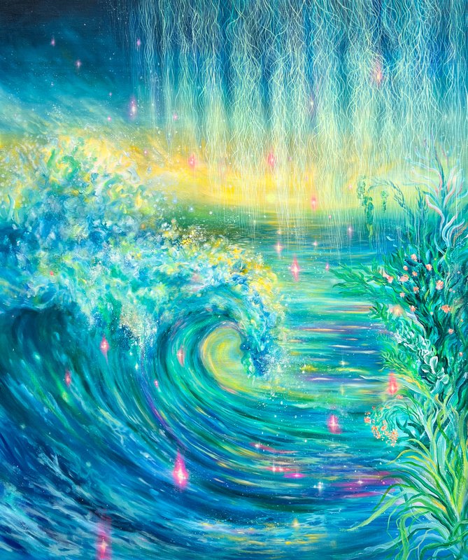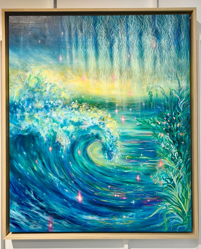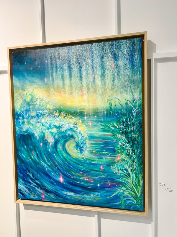 작가에게 예술은 격리된 어두운 세상에서 한 줄기 빛 같은 존재로 삶 그 자체라고 말합니다. 삶의 고통을 예술의 무의식적 힘으로 끌어안아 마음의 치유와 에너지를 되찾고 더 나아가 내일을 살아가는 것입니다. 캔버스 속 자신만의 방식으로 부정적인 기운을 걸러내고 치유의 물결을 담아낸 시도는 단순한 표현을 넘어, 작가뿐만 아니라 보는 이에게도 정신적 숨통을 틔우는 보호의 공간을 제공합니다. 우리는 빛나는 안료 아래에서 부드럽게 발광하는 작품을 통해 어둠 속에서도 자신만의 ‘쉼터’를 찾아 나가는 길을 찾고, 우리가 머무를 수 있는 심리적 파라다이스를 상기시킬 수 있습니다. 그의 작품을 감상하며 흔들리는 삶 속에서도 다시 나아갈 수 있는 내면의 힘을 발견해 보는 것은 어떨까요?