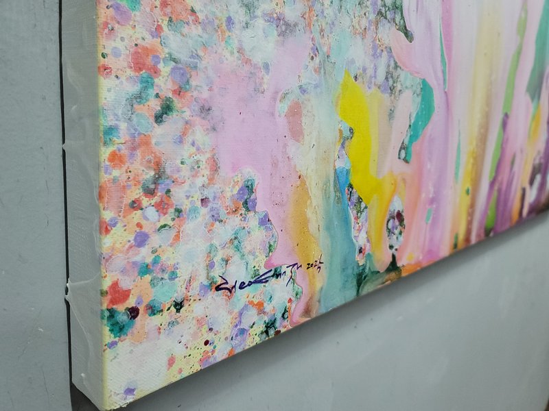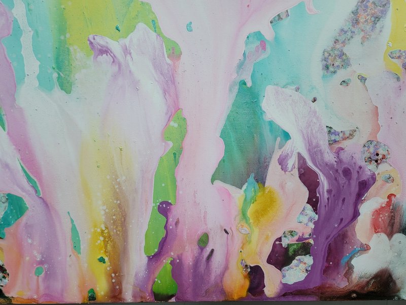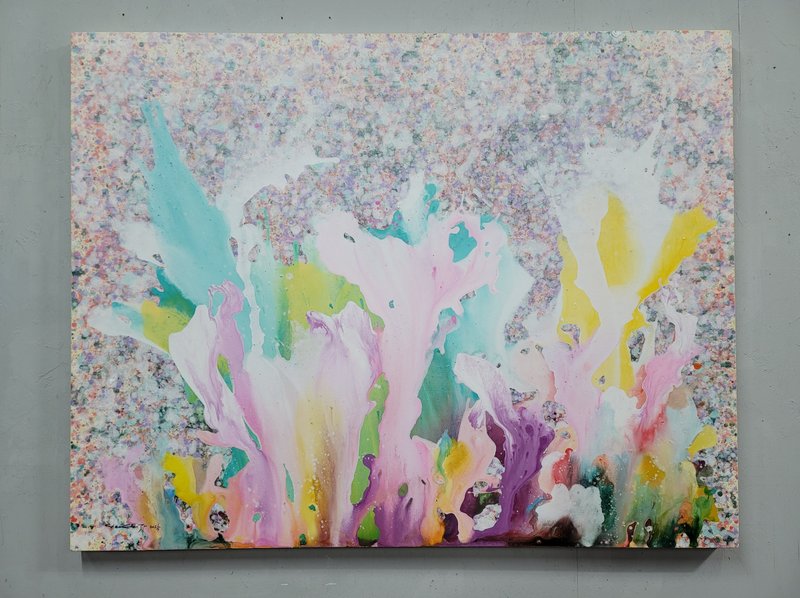 허은주 작가의 작품 이미지는 명확하다. 캔버스에 흐르고 뿌려진 여러 색의 물감들은 봄부터 여름까지의 힘찬 생명력과 에너지의 표상을 몽상적이고 아름답게 표현했다. 이리 흐르고 저리 튀며 '우연'이 모여 만들어진 작품 속 변화무쌍한 이미지는 균형을 이루고 조화롭게 보인다. 누군가에겐 보는 순간 '시작'을 위한 용기와 에너지가 되기를 바라는 작가의 이상과 낭만이기도 하다. 숨 쉬듯 잔잔하고, 한편으로는 역동적인 그녀의 작품은 어쩌면 삶을 살아가는 우리의 인생과도 닮은 것처럼 느껴진다.