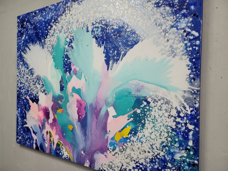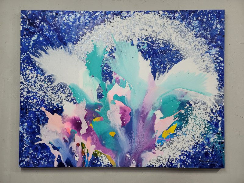 허은주 작가의 작품 이미지는 명확하다. 캔버스에 흐르고 뿌려진 여러 색의 물감들은 봄부터 여름까지의 힘찬 생명력과 에너지의 표상을 몽상적이고 아름답게 표현했다. 이리 흐르고 저리 튀며 '우연'이 모여 만들어진 작품 속 변화무쌍한 이미지는 균형을 이루고 조화롭게 보인다. 누군가에겐 보는 순간 '시작'을 위한 용기와 에너지가 되기를 바라는 작가의 이상과 낭만이기도 하다. 숨 쉬듯 잔잔하고, 한편으로는 역동적인 그녀의 작품은 어쩌면 삶을 살아가는 우리의 인생과도 닮은 것처럼 느껴진다.
