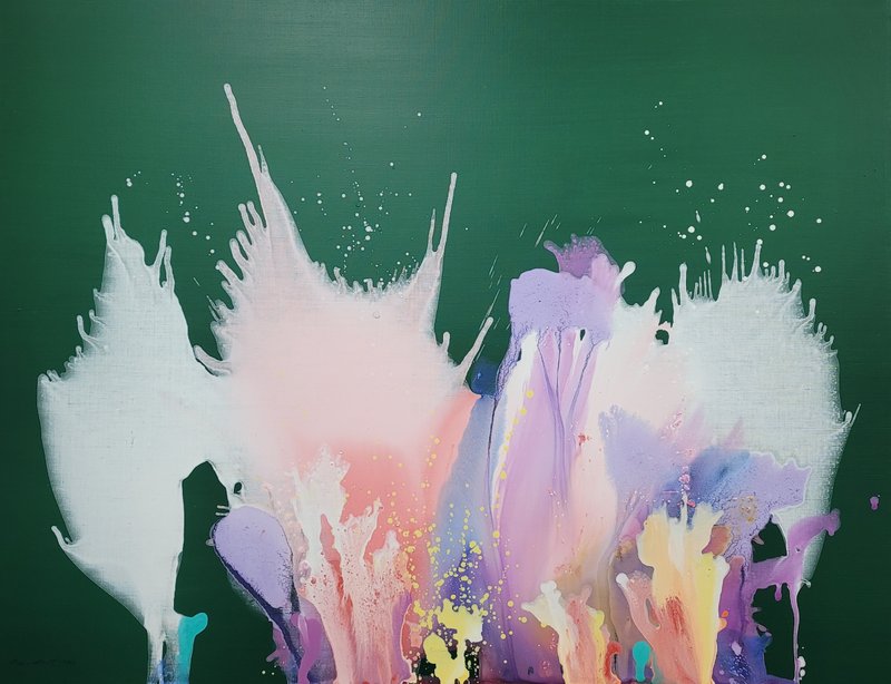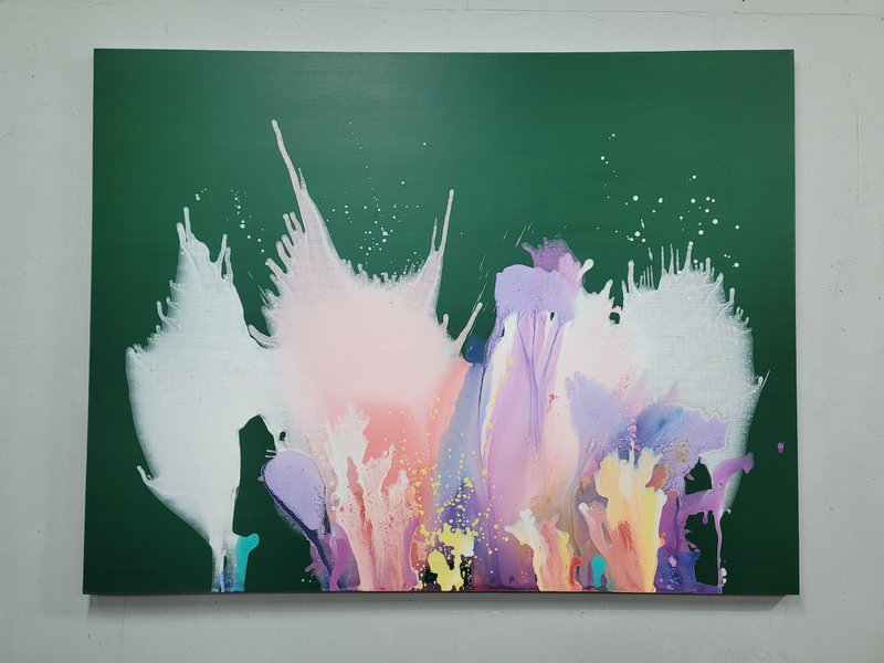 허은주 작가의 작품 이미지는 명확하다. 캔버스에 흐르고 뿌려진 여러 색의 물감들은 봄부터 여름까지의 힘찬 생명력과 에너지의 표상을 몽상적이고 아름답게 표현했다. 이리 흐르고 저리 튀며 '우연'이 모여 만들어진 작품 속 변화무쌍한 이미지는 균형을 이루고 조화롭게 보인다. 누군가에겐 보는 순간 '시작'을 위한 용기와 에너지가 되기를 바라는 작가의 이상과 낭만이기도 하다. 숨 쉬듯 잔잔하고, 한편으로는 역동적인 그녀의 작품은 어쩌면 삶을 살아가는 우리의 인생과도 닮은 것처럼 느껴진다.