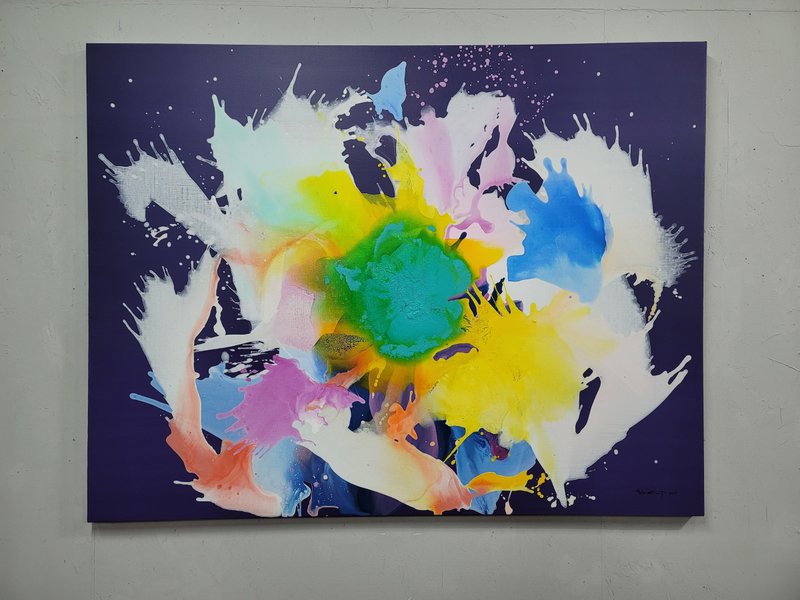 허은주 작가의 작품 이미지는 명확하다. 캔버스에 흐르고 뿌려진 여러 색의 물감들은 봄부터 여름까지의 힘찬 생명력과 에너지의 표상을 몽상적이고 아름답게 표현했다. 이리 흐르고 저리 튀며 '우연'이 모여 만들어진 작품 속 변화무쌍한 이미지는 균형을 이루고 조화롭게 보인다. 누군가에겐 보는 순간 '시작'을 위한 용기와 에너지가 되기를 바라는 작가의 이상과 낭만이기도 하다. 숨 쉬듯 잔잔하고, 한편으로는 역동적인 그녀의 작품은 어쩌면 삶을 살아가는 우리의 인생과도 닮은 것처럼 느껴진다.