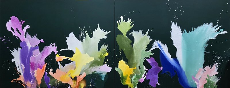 허은주 작가의 작품 이미지는 명확하다. 캔버스에 흐르고 뿌려진 여러 색의 물감들은 봄부터 여름까지의 힘찬 생명력과 에너지의 표상을 몽상적이고 아름답게 표현했다. 이리 흐르고 저리 튀며 '우연'이 모여 만들어진 작품 속 변화무쌍한 이미지는 균형을 이루고 조화롭게 보인다. 누군가에겐 보는 순간 '시작'을 위한 용기와 에너지가 되기를 바라는 작가의 이상과 낭만이기도 하다. 숨 쉬듯 잔잔하고, 한편으로는 역동적인 그녀의 작품은 어쩌면 삶을 살아가는 우리의 인생과도 닮은 것처럼 느껴진다.