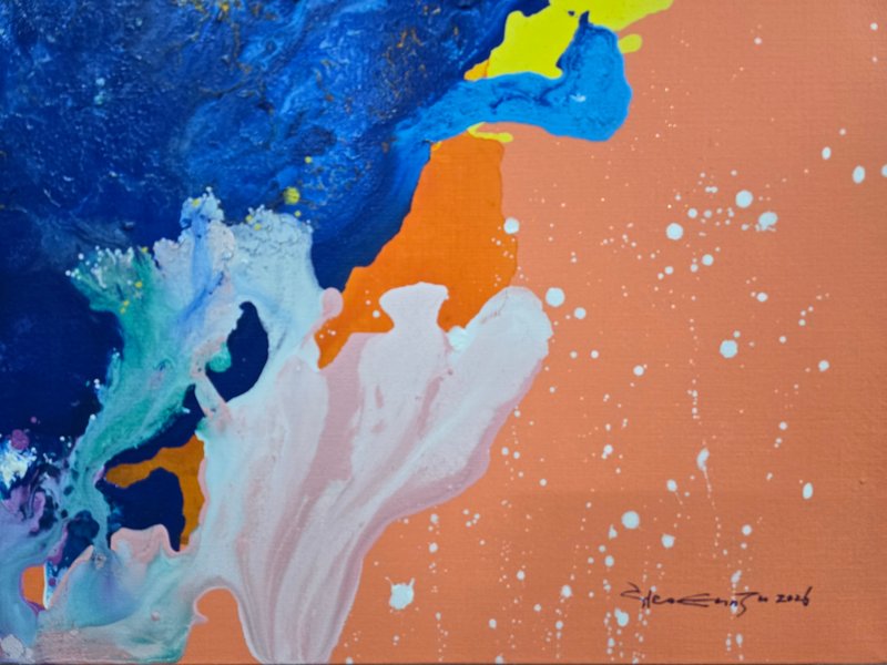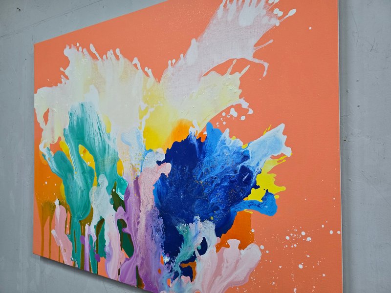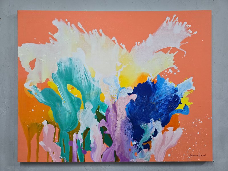 허은주 작가의 작품 이미지는 명확하다. 캔버스에 흐르고 뿌려진 여러 색의 물감들은 봄부터 여름까지의 힘찬 생명력과 에너지의 표상을 몽상적이고 아름답게 표현했다. 이리 흐르고 저리 튀며 '우연'이 모여 만들어진 작품 속 변화무쌍한 이미지는 균형을 이루고 조화롭게 보인다. 누군가에겐 보는 순간 '시작'을 위한 용기와 에너지가 되기를 바라는 작가의 이상과 낭만이기도 하다. 숨 쉬듯 잔잔하고, 한편으로는 역동적인 그녀의 작품은 어쩌면 삶을 살아가는 우리의 인생과도 닮은 것처럼 느껴진다.