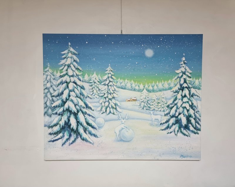 산책하다 보면 잎이 무성한 나무, 살랑이는 바람, 새의 지저귐에 문득 감동을 받게 되는 순간이 있습니다. ‘…숲은 어머니의 마음입니다. 인자하고 따뜻합니다.’라는 시의 구절처럼 자연이 주는 어머니와 같은 포용력과 요람 같은 평화로움은 잠시 힘들었던 순간을 잊게 해줍니다. 작가 또한, 숲이라는 주제로 작업하는 동안만큼은 따뜻한 시선으로 세상을 바라보며 편안한 마음으로 그 속에서 유영하는 자신을 발견합니다. 따뜻한 화면 속 물과 음악이 흐르고, 사슴이 뛰노는 모습을 바라보면 마치 꿈꾸는 듯한 시간을 가져다줍니다. 복잡한 사회에 지친 현대인들이 작품을 감상하는 동안에는 복잡한 생각이 들지 않도록 편안함을 선물하고 싶은 작가의 마음이 작품에서도 느껴집니다.