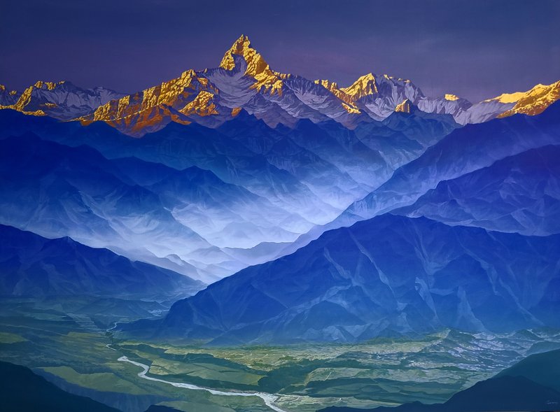 드넓은 바다, 우거진 숲길, 굽이굽이 늘어선 산등성이 등 우리의 존재보다 큰 자연을 마주했을 때, 힐링과 경이의 감정을 동시에 느끼곤 합니다. 일차원적인 이유는 자연의 압도적인 아름다움 때문일 것입니다. 그러나 좀 더 깊이 들어가 보면, 쏟아져 나오는 문명의 물질로 마비된, 본능의 감각이 건드려졌기 때문이라고도 할 수 있습니다. 그렇기에 우리는 자연을 통해 존재에 대해 성찰하고, 이치적인 깨달음을 얻기도 하는 것 아닐까요? 조광기 작가는 바로 이 점에 주목하여 자연물을 화폭에 담습니다. 공통으로 그의 작품은 대상이 클로즈업되고, 시선은 아래에서 위로 혹은 다가갈 수 없는 저 너머를 보는 듯한 구도로 그려졌습니다. 이런 화풍은 자연 본연의 아름다움과 숭고함 그리고 신비로움이 동시에 느껴지게 하며, 또한 경외감을 일으켜 본질과 내면의 가치에 대해 돌아보게 합니다. 이처럼 거대한 자연을 마주했을 때의 인상을 그대로 선사하는 이 작품, 매력적이지 않나요?