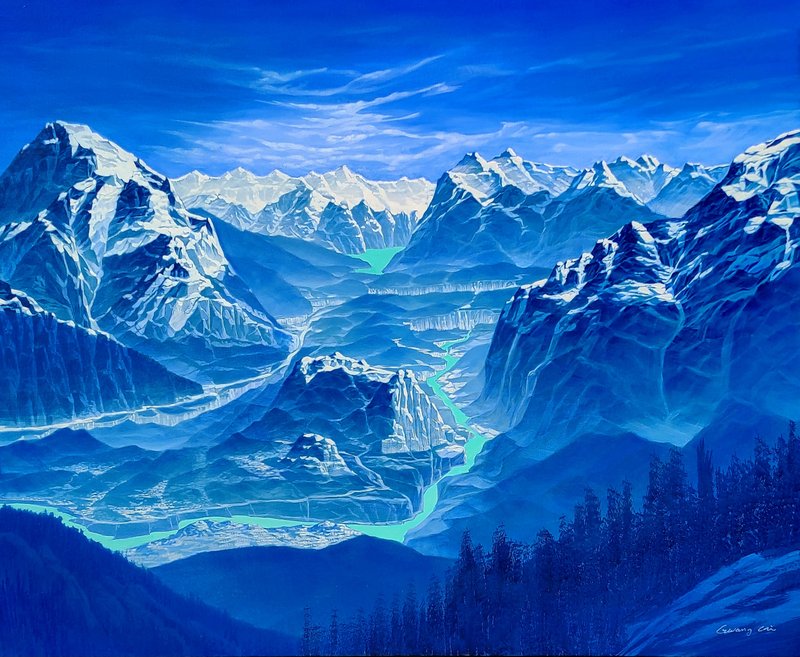 드넓은 바다, 우거진 숲길, 굽이굽이 늘어선 산등성이 등 우리의 존재보다 큰 자연을 마주했을 때, 힐링과 경이의 감정을 동시에 느끼곤 합니다. 일차원적인 이유는 자연의 압도적인 아름다움 때문일 것입니다. 그러나 좀 더 깊이 들어가 보면, 쏟아져 나오는 문명의 물질로 마비된, 본능의 감각이 건드려졌기 때문이라고도 할 수 있습니다. 그렇기에 우리는 자연을 통해 존재에 대해 성찰하고, 이치적인 깨달음을 얻기도 하는 것 아닐까요? 조광기 작가는 바로 이 점에 주목하여 자연물을 화폭에 담습니다. 공통으로 그의 작품은 대상이 클로즈업되고, 시선은 아래에서 위로 혹은 다가갈 수 없는 저 너머를 보는 듯한 구도로 그려졌습니다. 이런 화풍은 자연 본연의 아름다움과 숭고함 그리고 신비로움이 동시에 느껴지게 하며, 또한 경외감을 일으켜 본질과 내면의 가치에 대해 돌아보게 합니다. 이처럼 거대한 자연을 마주했을 때의 인상을 그대로 선사하는 이 작품, 매력적이지 않나요?