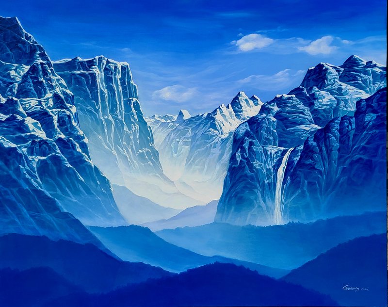 드넓은 바다, 우거진 숲길, 굽이굽이 늘어선 산등성이 등 우리의 존재보다 큰 자연을 마주했을 때, 힐링과 경이의 감정을 동시에 느끼곤 합니다. 일차원적인 이유는 자연의 압도적인 아름다움 때문일 것입니다. 그러나 좀 더 깊이 들어가 보면, 쏟아져 나오는 문명의 물질로 마비된, 본능의 감각이 건드려졌기 때문이라고도 할 수 있습니다. 그렇기에 우리는 자연을 통해 존재에 대해 성찰하고, 이치적인 깨달음을 얻기도 하는 것 아닐까요? 조광기 작가는 바로 이 점에 주목하여 자연물을 화폭에 담습니다. 공통으로 그의 작품은 대상이 클로즈업되고, 시선은 아래에서 위로 혹은 다가갈 수 없는 저 너머를 보는 듯한 구도로 그려졌습니다. 이런 화풍은 자연 본연의 아름다움과 숭고함 그리고 신비로움이 동시에 느껴지게 하며, 또한 경외감을 일으켜 본질과 내면의 가치에 대해 돌아보게 합니다. 이처럼 거대한 자연을 마주했을 때의 인상을 그대로 선사하는 이 작품, 매력적이지 않나요?