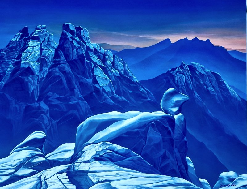 드넓은 바다, 우거진 숲길, 굽이굽이 늘어선 산등성이 등 우리의 존재보다 큰 자연을 마주했을 때, 힐링과 경이의 감정을 동시에 느끼곤 합니다. 일차원적인 이유는 자연의 압도적인 아름다움 때문일 것입니다. 그러나 좀 더 깊이 들어가 보면, 쏟아져 나오는 문명의 물질로 마비된, 본능의 감각이 건드려졌기 때문이라고도 할 수 있습니다. 그렇기에 우리는 자연을 통해 존재에 대해 성찰하고, 이치적인 깨달음을 얻기도 하는 것 아닐까요? 조광기 작가는 바로 이 점에 주목하여 자연물을 화폭에 담습니다. 공통으로 그의 작품은 대상이 클로즈업되고, 시선은 아래에서 위로 혹은 다가갈 수 없는 저 너머를 보는 듯한 구도로 그려졌습니다. 이런 화풍은 자연 본연의 아름다움과 숭고함 그리고 신비로움이 동시에 느껴지게 하며, 또한 경외감을 일으켜 본질과 내면의 가치에 대해 돌아보게 합니다. 이처럼 거대한 자연을 마주했을 때의 인상을 그대로 선사하는 이 작품, 매력적이지 않나요?