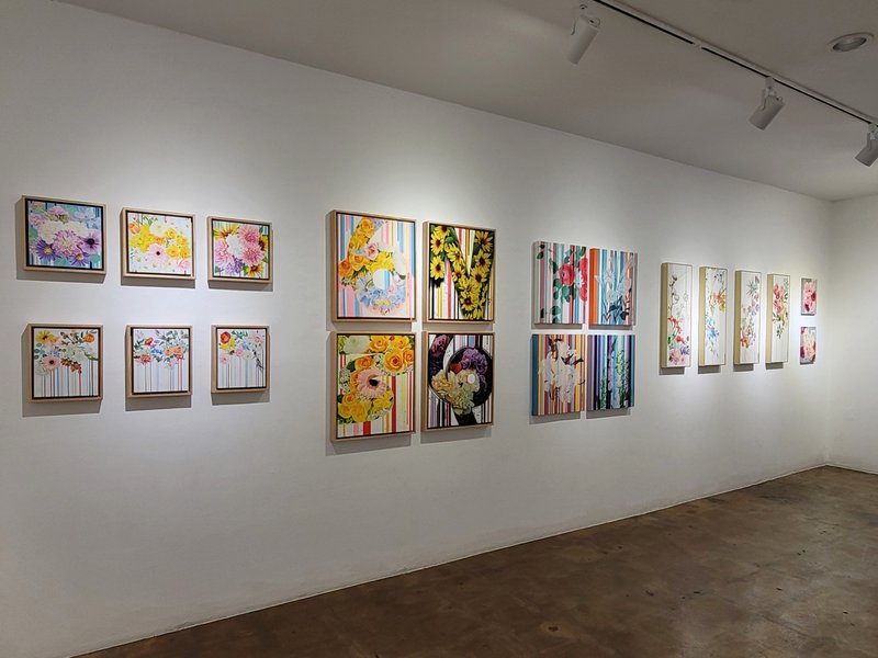 조은희 작가는 작품을 관람하는 감상자로 하여금 작가의 감정이 아닌 각 자신의 감정으로 바라볼 수 있도록 꽃이라는 실존 형태를 빌려 색과 선으로 화면을 재구성한다. 시간이 지나면서 점점 더 피어나는 꽃, 반대로 시드는 꽃들을 촬영한 뒤 꽃의 크기를 변형하고 색을 변화시켜 연출한다. 감정을 의도적으로 조절할 수 없듯이 자연의 섭리로 피고 지는 꽃들은 작가가 바라보는 ‘슬픔’의 모습과 닮아있다. 슬픔을 느끼는 사건들은 자연스러운 성장의 흐름으로써 공감이 가능한 동일한 경험으로 마주하기도 하고, 때로는 각 개인만이 감당해야 하는 예상치 못한 모습으로 마주치기도 한다. 하나의 감정이지만 인간은 슬픔이라는 감정에서 완벽히 벗어날 수 없기에 다양한 모습으로 표출되고 회복된다. 슬픈 감정은 삶을 살아가며 점점 더 깊어지기도 하고, 마음속 응어리로 담아지기도 하고 반대로 그 후 맞이할 슬픈 사건에 대한 방어벽이 되기도 한다. 이러한 감정의 다양성을 다채로운 색 조합과 자유로이 크기가 변형된 꽃들, 그리고 불특정 다수를 뜻하는 일직선으로 표현하였다, 작가는 여러 형태의 꽃들을 조화롭게 구성해 감정을 드러내고 있다.