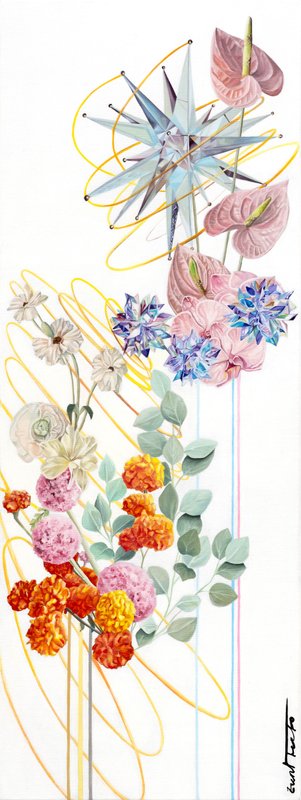때로는 차가운 감정 속에서 마음의 휴식과 안식이 되어주는 조은희 작가의 작품에는 성장의 흐름, 경험, 모습처럼 모든 감정의 순간이 다 담겨 있습니다. 자신의 감정을 꽃에 투영시켜 제시하는 작가의 작품들은 마치 자화상처럼 느껴지기도 합니다. 작품 앞에 서서 잠시 머물러보면, 이색적인 이야기 내면에 익숙하고 친근한 풍경들이 공존해 있다는 것을 발견할 수 있습니다. 빼곡하게 들어찬 꽃잎과 풍성한 부피감, 그리고 꽃잎의 다채로운 색감이 시각적으로도 생생하게 느껴지는 듯하여 오래도록 감상자의 시선을 빼앗는 모습입니다. 꽃들이 모여 붉은 잎으로 물드는 과정은 슬픈 감정을 표출시키고 회복하며 희망적인 메시지를 상징처럼 보여줍니다. 삶의 다양한 모습을 향기로 가득 채워주는 사랑 가득한 작품입니다. 성장의 모습을 담아 선물 같은 작품과 함께 따뜻한 공감과 긍정적인 기운을 한껏 받아보시길 바랍니다.