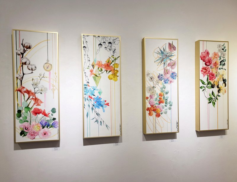 때로는 차가운 감정 속에서 마음의 휴식과 안식이 되어주는 조은희 작가의 작품에는 성장의 흐름, 경험, 모습처럼 모든 감정의 순간이 다 담겨 있습니다. 자신의 감정을 꽃에 투영시켜 제시하는 작가의 작품들은 마치 자화상처럼 느껴지기도 합니다. 작품 앞에 서서 잠시 머물러보면, 이색적인 이야기 내면에 익숙하고 친근한 풍경들이 공존해 있다는 것을 발견할 수 있습니다. 빼곡하게 들어찬 꽃잎과 풍성한 부피감, 그리고 꽃잎의 다채로운 색감이 시각적으로도 생생하게 느껴지는 듯하여 오래도록 감상자의 시선을 빼앗는 모습입니다. 꽃들이 모여 붉은 잎으로 물드는 과정은 슬픈 감정을 표출시키고 회복하며 희망적인 메시지를 상징처럼 보여줍니다. 삶의 다양한 모습을 향기로 가득 채워주는 사랑 가득한 작품입니다. 성장의 모습을 담아 선물 같은 작품과 함께 따뜻한 공감과 긍정적인 기운을 한껏 받아보시길 바랍니다.