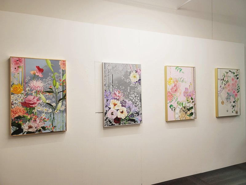 때로는 차가운 감정 속에서 마음의 휴식과 안식이 되어주는 조은희 작가의 작품에는 성장의 흐름, 경험, 모습처럼 모든 감정의 순간이 다 담겨 있습니다. 자신의 감정을 꽃에 투영시켜 제시하는 작가의 작품들은 마치 자화상처럼 느껴지기도 합니다. 작품 앞에 서서 잠시 머물러보면, 이색적인 이야기 내면에 익숙하고 친근한 풍경들이 공존해 있다는 것을 발견할 수 있습니다. 빼곡하게 들어찬 꽃잎과 풍성한 부피감, 그리고 꽃잎의 다채로운 색감이 시각적으로도 생생하게 느껴지는 듯하여 오래도록 감상자의 시선을 빼앗는 모습입니다. 꽃들이 모여 붉은 잎으로 물드는 과정은 슬픈 감정을 표출시키고 회복하며 희망적인 메시지를 상징처럼 보여줍니다. 삶의 다양한 모습을 향기로 가득 채워주는 사랑 가득한 작품입니다. 성장의 모습을 담아 선물 같은 작품과 함께 따뜻한 공감과 긍정적인 기운을 한껏 받아보시길 바랍니다.