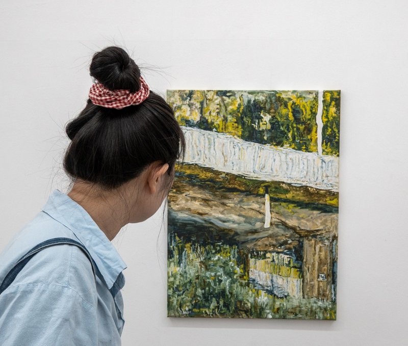심효선 작가의 작품 속 풍경은 어딘가 익숙하지만, 자세히 관찰하다 보면 색다른 느낌이 들게 됩니다. 작가는 풍경을 물리적, 지리적 위치에 관한 평면적 요소가 아니라 인간의 실천 행위를 포괄하는 개념으로 생각하여 인간의 경험이 모든 감각으로 이어져 한 장소에서 이루어질 때 구체적인 현실성을 획득한다고 말합니다. 또한 우리는 시간을 변화와 존재의 흐름으로 파악할 뿐이기 때문에 작가는 시간을 붓질로 표현하여 가라앉거나, 맴돌거나, 불쑥 솟아오르며 재구성되는 모습을 형상화하여 그려 넣습니다. 작가는 독특한 선묘와 색감을 사용하여 일상 속의 풍경을 특별하게 만들어 익숙한 장소의 모습까지 특별하게 만들어 내는 힘을 가지고 있습니다. 작품 속 드러난 작은 일상의 기록을 살펴보며 풍경 이미지의 반복과 재구성을 통해 감각이 시각화되는 경험을 느껴보시는 건 어떨까요?