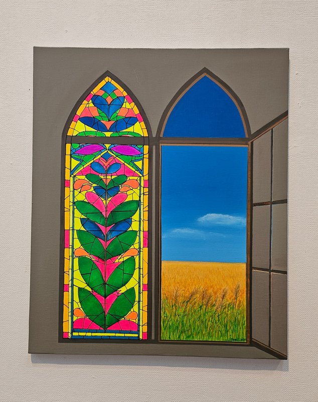나태주 시인의 <풀꽃>이라는 시가 저절로 떠오르는 그림입니다. “자세히 보아야 예쁘다/오래 보아야 사랑스럽다/너도 그렇다”. 유심히 볼수록 매력적인 야생화의 특징을 잘 담아낸 그림이라고 생각됩니다. 언뜻 보면 그저 무성한 풀숲 같지만, 자세히 살펴보면 자신만의 아름다운 꽃을 피워 낸 야생화가 생생하게 묘사되어 있습니다. 세상엔 영화나 드라마처럼 화려한 주인공만 있는 것이 아닙니다. 각자의 삶을 살아가고 있는 사람이라면 누구나 ‘나’의 세상에서는 주인공이 됩니다. 가끔은 내가 너무나 초라하게 느껴질 수도 있지만, 그럴 땐 혼란한 수풀 속에서 스스로 꽃을 피워 내는 야생화를 떠올려 봅시다. 이 빛나는 작은 꽃처럼 우리의 삶이 빛나길 바라는 마음을 담아 작업하는 정세미 작가의 작품을 바라보는 것만으로도 작은 위로가 될 것입니다. 작가의 그림 속 거대한 수풀 사이에서 작지만 꼿꼿하게 자리를 지키는 야생화를 유심히 관찰하세요.