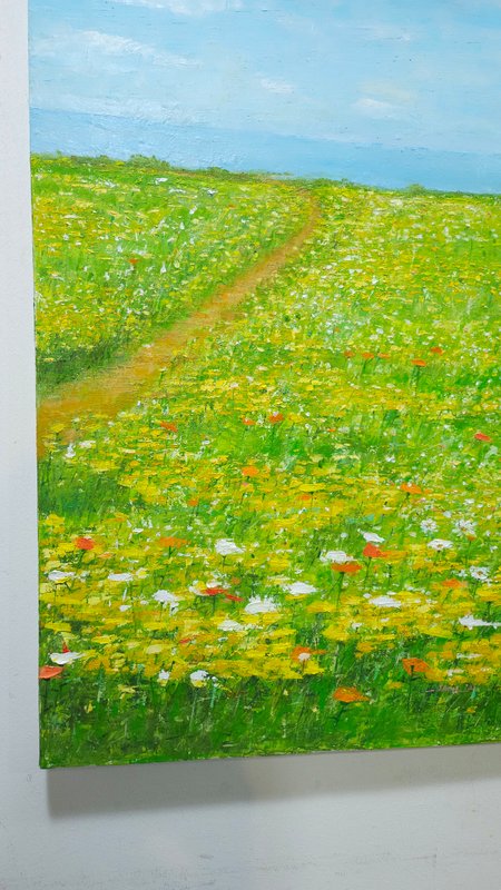 나태주 시인의 <풀꽃>이라는 시가 저절로 떠오르는 그림입니다. “자세히 보아야 예쁘다/오래 보아야 사랑스럽다/너도 그렇다”. 유심히 볼수록 매력적인 야생화의 특징을 잘 담아낸 그림이라고 생각됩니다. 언뜻 보면 그저 무성한 풀숲 같지만, 자세히 살펴보면 자신만의 아름다운 꽃을 피워 낸 야생화가 생생하게 묘사되어 있습니다. 세상엔 영화나 드라마처럼 화려한 주인공만 있는 것이 아닙니다. 각자의 삶을 살아가고 있는 사람이라면 누구나 ‘나’의 세상에서는 주인공이 됩니다. 가끔은 내가 너무나 초라하게 느껴질 수도 있지만, 그럴 땐 혼란한 수풀 속에서 스스로 꽃을 피워 내는 야생화를 떠올려 봅시다. 이 빛나는 작은 꽃처럼 우리의 삶이 빛나길 바라는 마음을 담아 작업하는 정세미 작가의 작품을 바라보는 것만으로도 작은 위로가 될 것입니다. 작가의 그림 속 거대한 수풀 사이에서 작지만 꼿꼿하게 자리를 지키는 야생화를 유심히 관찰하세요.