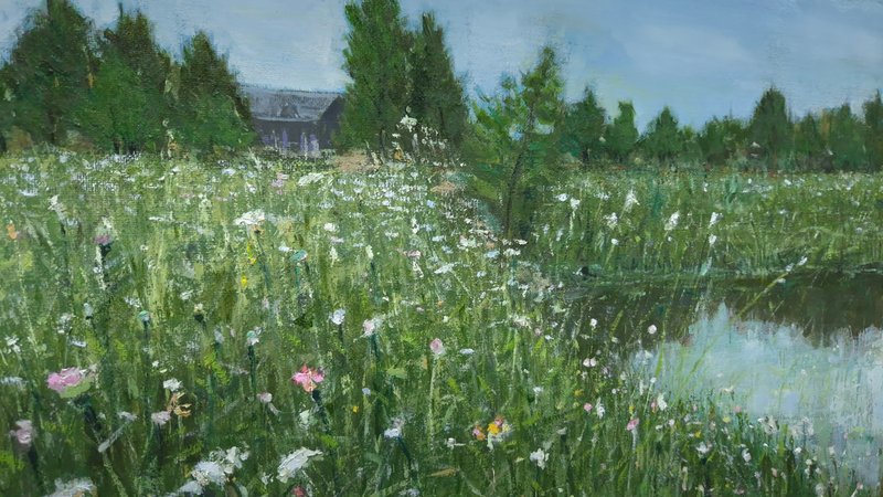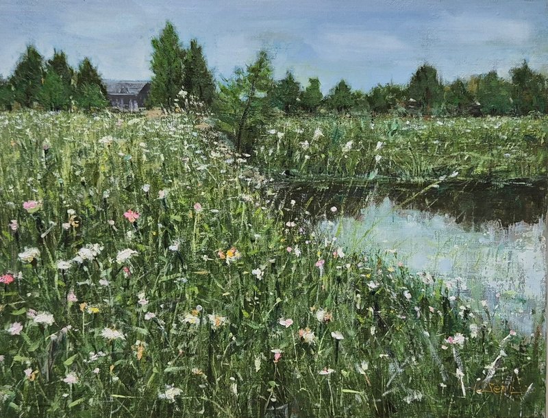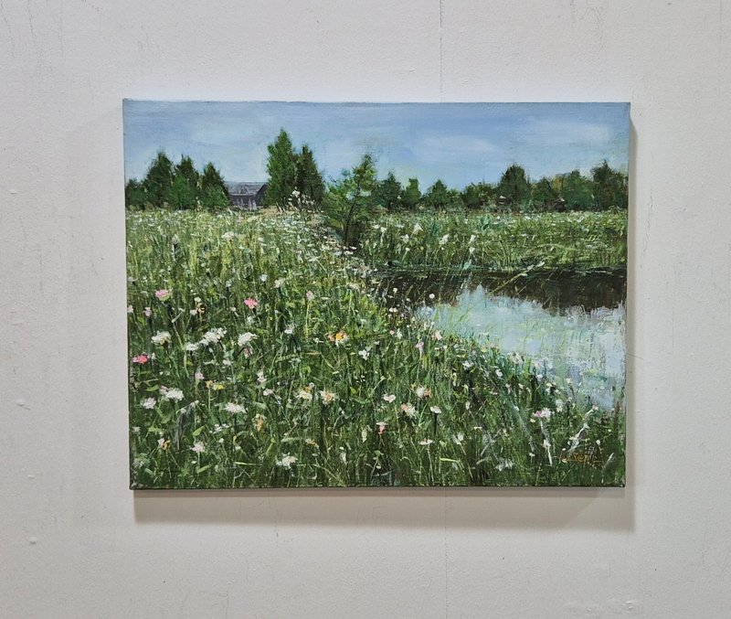 무심히 스쳐 지나가곤 하는 주변에 널린 잡초 가득한 풀숲은 그 나름의 삶들이 치열하게 살아남는 우리의 삶과 같은 공간이다. 그 사이에서 고요하게 작은 꽃을 피우는 야생화는 혼란하고 외로운 상황 속에서도 스스로 빛을 낸다. 멀리서 보면 녹음을 그려낸 작품 같지만, 자세히 들여다보면 그 속에 그려진 꽃들을 찾을 수 있다. 정세미 작가 특유의 얇고 날카로운 붓 터치는 치열하게 생존하는 야생화의 분위기를 한층 더 살려준다. 그들은 비슷한 듯싶으면서도 모두 다른 색의 꽃잎과 각자의 형태를 가지고 있다. 작가는 이름 모를 무성한 수풀을 바라보며 영감을 얻는다. 그 속에 단단히 서 있는 작은 꽃 하나, 풀잎 하나에서 ‘나’의 모습을 발견하고 그 작은 공간에서 ‘어떠한 삶’을 유추한다. 정세미 작가의 작품은 빛나는 작은 꽃처럼 우리의 삶도 빛나길 소망한다는 메시지를 담고 있다.