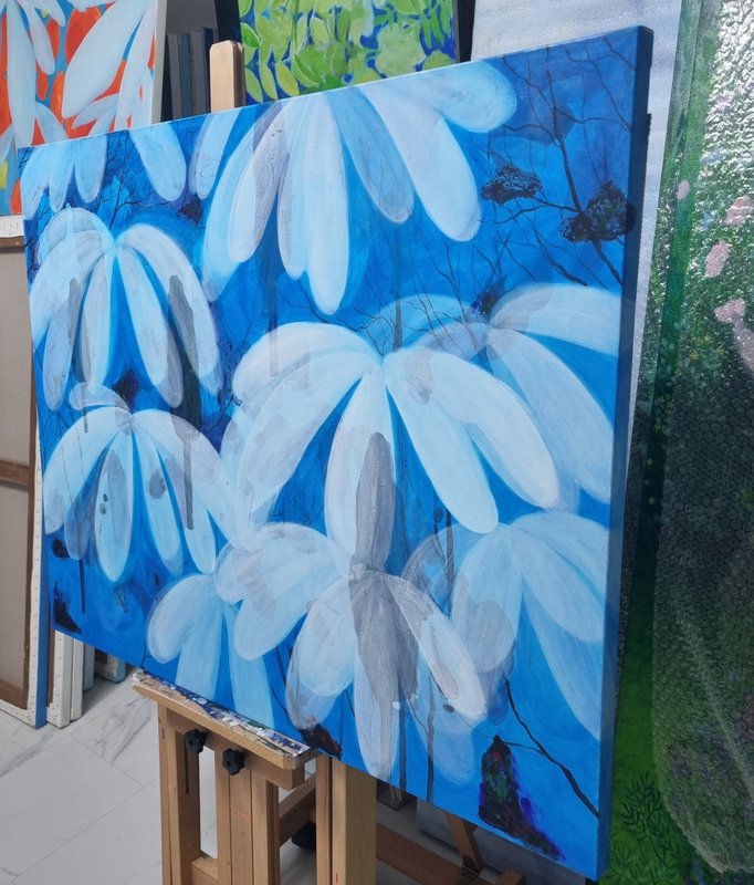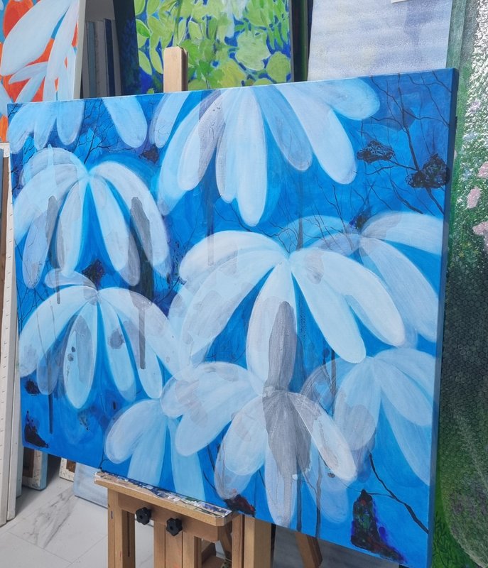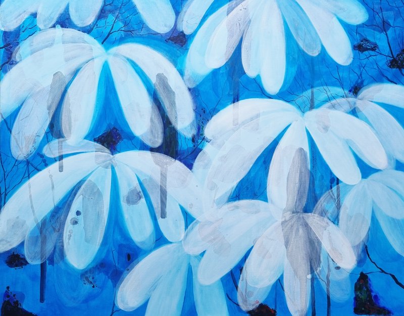 한진영 작가는 ‘나’를 관찰하며 자연을 관조한다고 말합니다. 관조란 관찰의 훈련이고, 고정관념에서 벗어나 제3의 눈으로 가만히 보는 행위입니다. 사물에 어떠한 명칭을 붙인다는 것은 한정된 사고의 울타리에 갇히게 되는 것입니다. 어떠한 것에 대해 이름 붙이지 않는 순간, 그것은 자유로운 상상력으로 다양하게 표현될 수 있습니다. 그것을 안다는 생각에서 벗어날 때 우리의 사고는 해방될 수 있고 예술로 표현될 수 있는 것입니다. 이 말을 증명하듯 위 작품 속 자연은 우리가 보았던 자연 그대로의 모습과는 조금 다르게 표현되어 있습니다. 한진영 작가가 관조한 자연을 감상하며 ‘나’를 비롯한 모든 생명체가 하나로 연결된 자연, 그 안의 사랑을 느껴보세요. 그리고 밖으로 나가 자연을 바라봅시다. 잠시 멈추고 의식적으로 바라보는 숲과 나무가 주는 느낌은 평소와 다르게 느껴질지도 모릅니다.