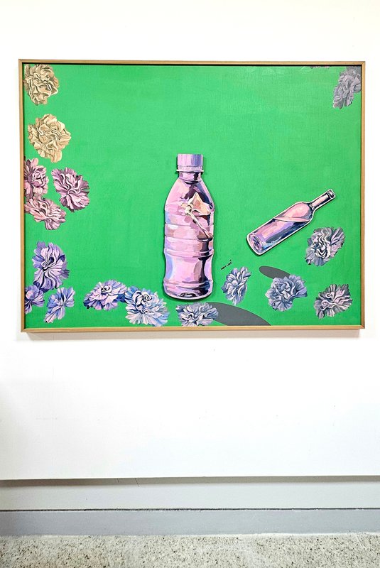 헤이지 리엠 작가는 회화적인 조형 언어를 통해 현대인의 삶에 내재한 긴장과 모순, 그리고 그 사이의 간극을 탐구한다. 작가는 인간의 흔적과 생물학적 상징을 병이라는 매개로 구현해 내며, 정물의 정적 이미지와 그 내부에 담긴 생의 기류를 교차시킨다. <Vital Vanitas> 시리즈에서 작가는 꽃과 병을 주요한 조형 요소로 택한다. 병은 유한한 존재로서의 몸과 시간의 그릇을 나타낸다. 병 안에 담긴 해골, 뼈, 혹은 불분명한 기형들은 ‘바니타스(Vanitas)’라는 미술사적 문맥을 차용하며, 아름다움과 죽음이 병치되는 시각적 충돌을 일으킨다. 그러나 이 시리즈가 전통적 바니타스와 구별되는 점은 바로 생동감이다. 형형색색의 카네이션은 병과 함께 부유하며 생의 리듬을 타고 화면을 채운다. 죽음을 암시하는 병 내부의 잔존물과는 대조적으로, 꽃은 삶의 순간을 선명하게 드러낸다. 특히 색면의 구성에서 보이는 청록과 청색, 자홍색의 배치는 감정의 분화와 이동을 시각화하며, 각 요소들이 생성과 소멸 사이에서 끊임없이 교차하고 있음을 시사한다. 헤이지 리엠의 작업은 죽음에 대한 직접적인 서술이 아닌, 그것이 생 안에서 어떻게 머물며 파장을 일으키는지를 담담하게 보여준다. Vital Vanitas는 단지 ‘삶과 죽음’이라는 대립 구도가 아니라, 이들 사이에서 끊임없이 오가는 감각의 흐름, 물질성과 비물질성의 교차, 그리고 인간 존재의 유약함과 반짝임을 동시에 품고 있는 작품 세계를 지속적으로 발전시킨다.