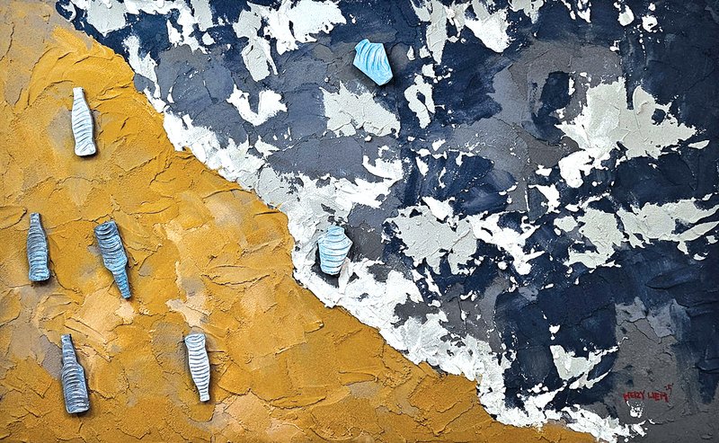 Heizy Liem 작가는 사람의 모습을 각종 병 형태에 빗대어 이를 단순한 색 면 형태로 표현한 추상화를 그린다. 작가는 병들의 형태와 모습을 사람 개개인의 모습으로 생각해 개인의 감정과 상태에 집중하여 표현하며, 1차원적인 이미지 위로 연관된 의미들을 한 겹 더 얹어서 인간 세상의 복잡함과 어울림을 표현하였다. 그는 또한 병들의 면 분할을 통해 다양성을 표현하지만, 결국은 서로의 존재가 합쳐져야 더욱 아름다워진다는 것을 보여주고자 한다. <병들의 세상>, <병들>이란 제목으로 '병'이란 단어가 주는 언어 유희적인 측면과 비유적인 이미지를 밝은 색감을 사용하여 작품을 통해 재미있게 보여준다. <사람들 속에서> 시리즈는 병과 병 사이에서의 만남과 어긋남, 거기서 오는 오해와 균열, 어울리며 새롭게 만들어지는 시각적 미감에 주목한다.