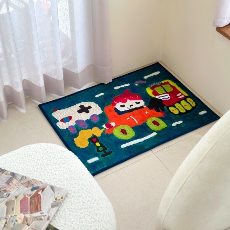작가만의 상상 세계를 한 호흡으로 그려 나간 듯이 보이는 색채가 아기자기하고 밝은 분위기를 전해줍니다. 마치 만화 캐릭터 같은 등장인물이 캔버스 곳곳에 배치되어 있어 시선을 따라가다 보면 작가가 들려주는 이상향적 이야기를 발견하게 됩니다. 작가만의 다채롭고 귀여움 가득한 표현이 단조롭고 반복적인 일상에 지쳐 휴식이 필요한 우리에게 재치 있게 위안을 주고 있습니다. 비정형 패턴으로 등장하는 식물과 인물 배치의 리듬감이 시선을 이끌고 종이 위 도상들이 오밀조밀하게 모여 있는 곳과 선명한 색채로 표현된 부분이 균형을 이루며 공간에 동심 적 심상을 줄 것입니다. 컬러 치료를 통해 스트레스를 해소하듯, 자유로운 표현과 밝은 색채를 통해 활력을 얻어보는 것은 어떨까요?