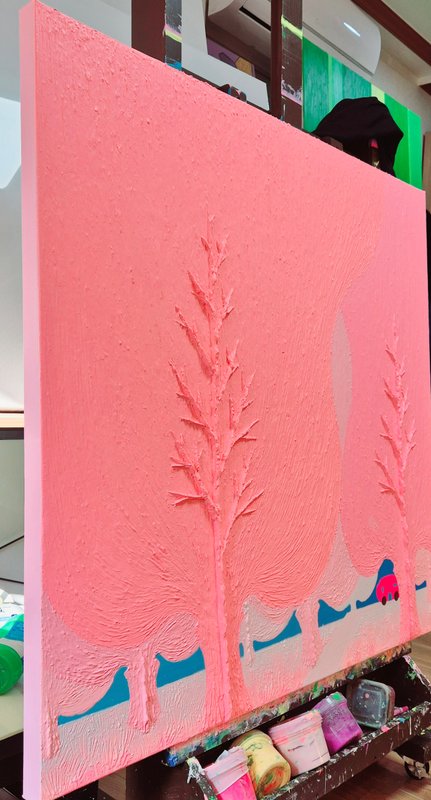 밝은 색조와 친근한 개체들로 구성된 오설 작가의 그림은 한눈에 경쾌하고 사랑스러운 느낌을 줍니다. 그림을 조금 더 자세히 들여다보자면, 시원스레 뻗은 ‘선’과 두터운 터치감으로 느껴지는 ‘면’의 조화 속에서 입체적 회화의 특징이 도드라지는데요. 이렇게 반대되는 두 성질의 것을 한 작품 안에 조화롭게 그려 냄으로써 작가는 ‘이성과 감성의 조율’에 대하여 이야기하고자 합니다. 이러한 오설 작가의 작품 세계는 겨울이 있으면 여름이 있고, 불이 있으면 물이 있듯, 서로 대립된 음양의 것들이 한데 어울려 이루어진 우리의 삶을 닮았습니다. 회화 작품 활동 이외에도 시(詩)를 통해 그만의 영감을 풀어내는 작가는 ‘그림은 소리 없는 시, 시는 소리 있는 그림’이라 했던 당나라의 시인이자 화가, 왕유가 그러했듯이 작가가 들려주고픈 ‘삶’에 대한 시 한 편이 그림 속에 녹아 있습니다. 여러분도 오설 작가의 작품을 통해 그가 소리 없이 읊는 시 한 구절을 감상해 보시기 바랍니다.