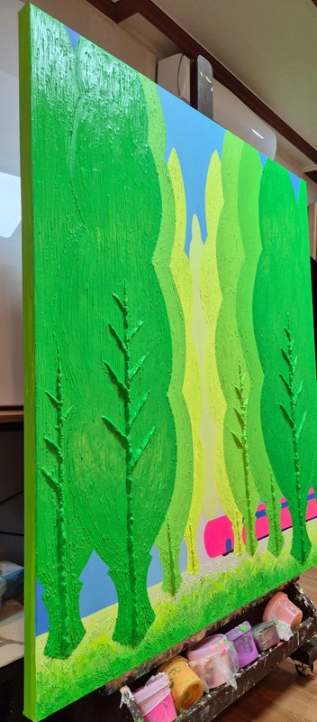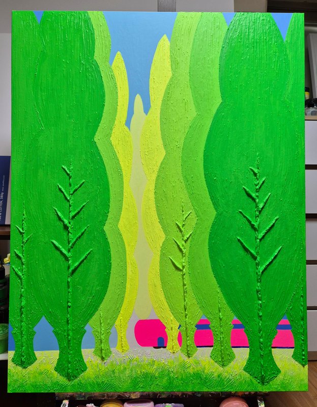 밝은 색조와 친근한 개체들로 구성된 오설 작가의 그림은 한눈에 경쾌하고 사랑스러운 느낌을 줍니다. 그림을 조금 더 자세히 들여다보자면, 시원스레 뻗은 ‘선’과 두터운 터치감으로 느껴지는 ‘면’의 조화 속에서 입체적 회화의 특징이 도드라지는데요. 이렇게 반대되는 두 성질의 것을 한 작품 안에 조화롭게 그려 냄으로써 작가는 ‘이성과 감성의 조율’에 대하여 이야기하고자 합니다. 이러한 오설 작가의 작품 세계는 겨울이 있으면 여름이 있고, 불이 있으면 물이 있듯, 서로 대립된 음양의 것들이 한데 어울려 이루어진 우리의 삶을 닮았습니다. 회화 작품 활동 이외에도 시(詩)를 통해 그만의 영감을 풀어내는 작가는 ‘그림은 소리 없는 시, 시는 소리 있는 그림’이라 했던 당나라의 시인이자 화가, 왕유가 그러했듯이 작가가 들려주고픈 ‘삶’에 대한 시 한 편이 그림 속에 녹아 있습니다. 여러분도 오설 작가의 작품을 통해 그가 소리 없이 읊는 시 한 구절을 감상해 보시기 바랍니다.