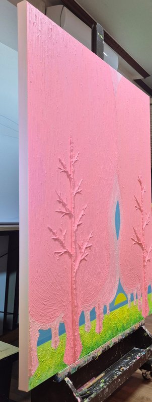 밝은 색조와 친근한 개체들로 구성된 오설 작가의 그림은 한눈에 경쾌하고 사랑스러운 느낌을 줍니다. 그림을 조금 더 자세히 들여다보자면, 시원스레 뻗은 ‘선’과 두터운 터치감으로 느껴지는 ‘면’의 조화 속에서 입체적 회화의 특징이 도드라지는데요. 이렇게 반대되는 두 성질의 것을 한 작품 안에 조화롭게 그려 냄으로써 작가는 ‘이성과 감성의 조율’에 대하여 이야기하고자 합니다. 이러한 오설 작가의 작품 세계는 겨울이 있으면 여름이 있고, 불이 있으면 물이 있듯, 서로 대립된 음양의 것들이 한데 어울려 이루어진 우리의 삶을 닮았습니다. 회화 작품 활동 이외에도 시(詩)를 통해 그만의 영감을 풀어내는 작가는 ‘그림은 소리 없는 시, 시는 소리 있는 그림’이라 했던 당나라의 시인이자 화가, 왕유가 그러했듯이 작가가 들려주고픈 ‘삶’에 대한 시 한 편이 그림 속에 녹아 있습니다. 여러분도 오설 작가의 작품을 통해 그가 소리 없이 읊는 시 한 구절을 감상해 보시기 바랍니다.