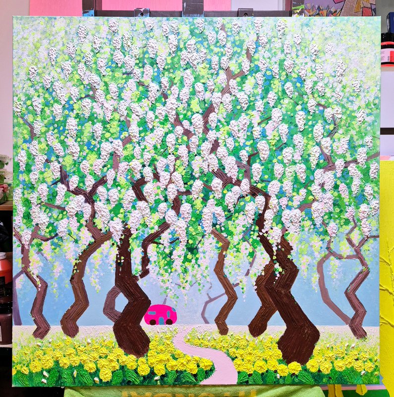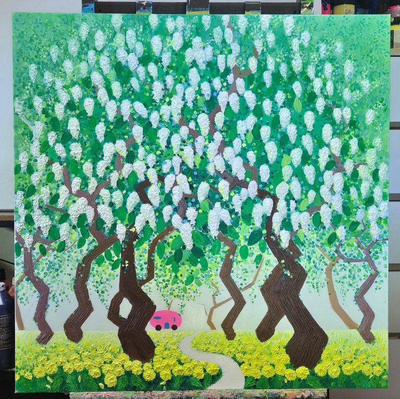 밝은 색조와 친근한 개체들로 구성된 오설 작가의 그림은 한눈에 경쾌하고 사랑스러운 느낌을 줍니다. 그림을 조금 더 자세히 들여다보자면, 시원스레 뻗은 ‘선’과 두터운 터치감으로 느껴지는 ‘면’의 조화 속에서 입체적 회화의 특징이 도드라지는데요. 이렇게 반대되는 두 성질의 것을 한 작품 안에 조화롭게 그려 냄으로써 작가는 ‘이성과 감성의 조율’에 대하여 이야기하고자 합니다. 이러한 오설 작가의 작품 세계는 겨울이 있으면 여름이 있고, 불이 있으면 물이 있듯, 서로 대립된 음양의 것들이 한데 어울려 이루어진 우리의 삶을 닮았습니다. 회화 작품 활동 이외에도 시(詩)를 통해 그만의 영감을 풀어내는 작가는 ‘그림은 소리 없는 시, 시는 소리 있는 그림’이라 했던 당나라의 시인이자 화가, 왕유가 그러했듯이 작가가 들려주고픈 ‘삶’에 대한 시 한 편이 그림 속에 녹아 있습니다. 여러분도 오설 작가의 작품을 통해 그가 소리 없이 읊는 시 한 구절을 감상해 보시기 바랍니다.