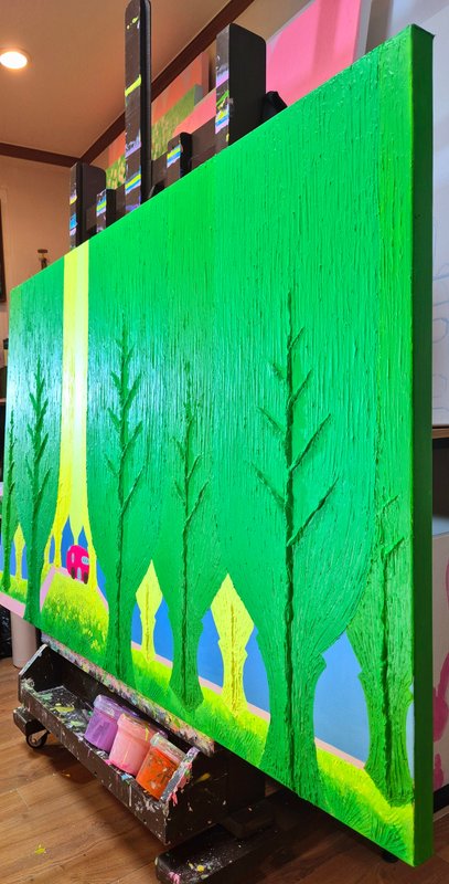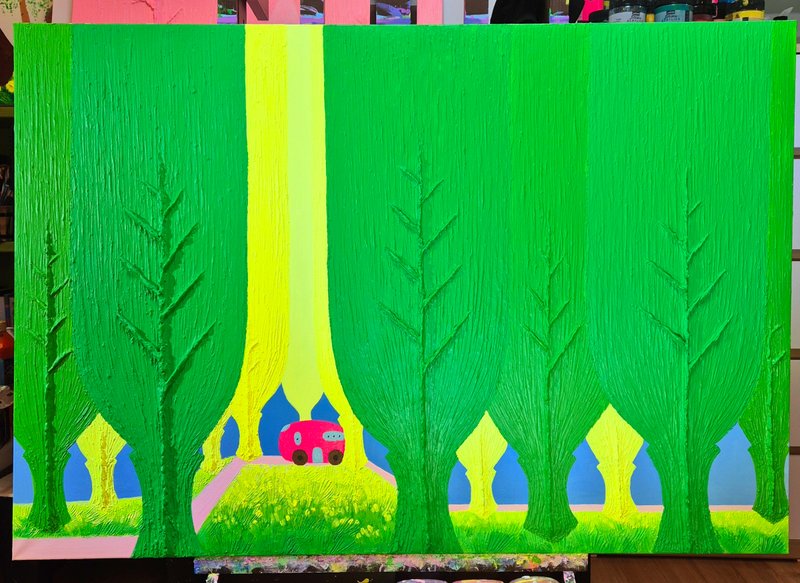 밝은 색조와 친근한 개체들로 구성된 오설 작가의 그림은 한눈에 경쾌하고 사랑스러운 느낌을 줍니다. 그림을 조금 더 자세히 들여다보자면, 시원스레 뻗은 ‘선’과 두터운 터치감으로 느껴지는 ‘면’의 조화 속에서 입체적 회화의 특징이 도드라지는데요. 이렇게 반대되는 두 성질의 것을 한 작품 안에 조화롭게 그려 냄으로써 작가는 ‘이성과 감성의 조율’에 대하여 이야기하고자 합니다. 이러한 오설 작가의 작품 세계는 겨울이 있으면 여름이 있고, 불이 있으면 물이 있듯, 서로 대립된 음양의 것들이 한데 어울려 이루어진 우리의 삶을 닮았습니다. 회화 작품 활동 이외에도 시(詩)를 통해 그만의 영감을 풀어내는 작가는 ‘그림은 소리 없는 시, 시는 소리 있는 그림’이라 했던 당나라의 시인이자 화가, 왕유가 그러했듯이 작가가 들려주고픈 ‘삶’에 대한 시 한 편이 그림 속에 녹아 있습니다. 여러분도 오설 작가의 작품을 통해 그가 소리 없이 읊는 시 한 구절을 감상해 보시기 바랍니다.