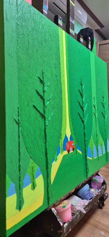 밝은 색조와 친근한 개체들로 구성된 오설 작가의 그림은 한눈에 경쾌하고 사랑스러운 느낌을 줍니다. 그림을 조금 더 자세히 들여다보자면, 시원스레 뻗은 ‘선’과 두터운 터치감으로 느껴지는 ‘면’의 조화 속에서 입체적 회화의 특징이 도드라지는데요. 이렇게 반대되는 두 성질의 것을 한 작품 안에 조화롭게 그려 냄으로써 작가는 ‘이성과 감성의 조율’에 대하여 이야기하고자 합니다. 이러한 오설 작가의 작품 세계는 겨울이 있으면 여름이 있고, 불이 있으면 물이 있듯, 서로 대립된 음양의 것들이 한데 어울려 이루어진 우리의 삶을 닮았습니다. 회화 작품 활동 이외에도 시(詩)를 통해 그만의 영감을 풀어내는 작가는 ‘그림은 소리 없는 시, 시는 소리 있는 그림’이라 했던 당나라의 시인이자 화가, 왕유가 그러했듯이 작가가 들려주고픈 ‘삶’에 대한 시 한 편이 그림 속에 녹아 있습니다. 여러분도 오설 작가의 작품을 통해 그가 소리 없이 읊는 시 한 구절을 감상해 보시기 바랍니다.