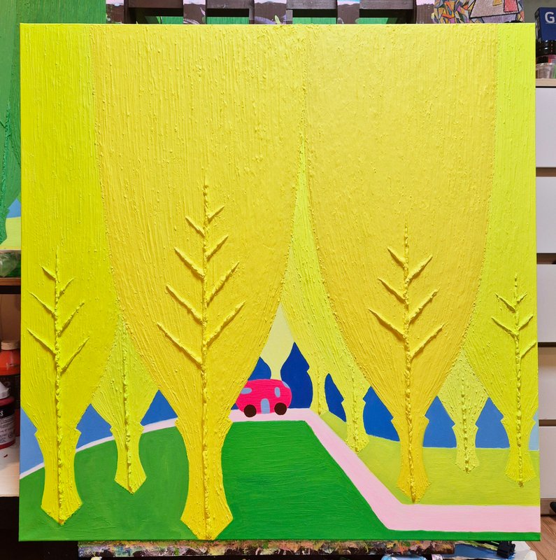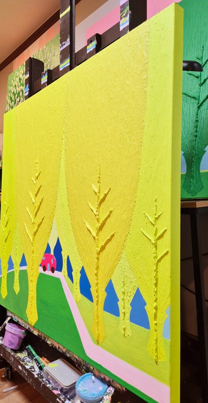 밝은 색조와 친근한 개체들로 구성된 오설 작가의 그림은 한눈에 경쾌하고 사랑스러운 느낌을 줍니다. 그림을 조금 더 자세히 들여다보자면, 시원스레 뻗은 ‘선’과 두터운 터치감으로 느껴지는 ‘면’의 조화 속에서 입체적 회화의 특징이 도드라지는데요. 이렇게 반대되는 두 성질의 것을 한 작품 안에 조화롭게 그려 냄으로써 작가는 ‘이성과 감성의 조율’에 대하여 이야기하고자 합니다. 이러한 오설 작가의 작품 세계는 겨울이 있으면 여름이 있고, 불이 있으면 물이 있듯, 서로 대립된 음양의 것들이 한데 어울려 이루어진 우리의 삶을 닮았습니다. 회화 작품 활동 이외에도 시(詩)를 통해 그만의 영감을 풀어내는 작가는 ‘그림은 소리 없는 시, 시는 소리 있는 그림’이라 했던 당나라의 시인이자 화가, 왕유가 그러했듯이 작가가 들려주고픈 ‘삶’에 대한 시 한 편이 그림 속에 녹아 있습니다. 여러분도 오설 작가의 작품을 통해 그가 소리 없이 읊는 시 한 구절을 감상해 보시기 바랍니다.