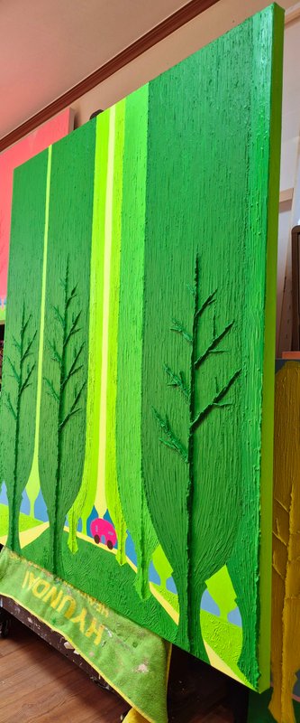 밝은 색조와 친근한 개체들로 구성된 오설 작가의 그림은 한눈에 경쾌하고 사랑스러운 느낌을 줍니다. 그림을 조금 더 자세히 들여다보자면, 시원스레 뻗은 ‘선’과 두터운 터치감으로 느껴지는 ‘면’의 조화 속에서 입체적 회화의 특징이 도드라지는데요. 이렇게 반대되는 두 성질의 것을 한 작품 안에 조화롭게 그려 냄으로써 작가는 ‘이성과 감성의 조율’에 대하여 이야기하고자 합니다. 이러한 오설 작가의 작품 세계는 겨울이 있으면 여름이 있고, 불이 있으면 물이 있듯, 서로 대립된 음양의 것들이 한데 어울려 이루어진 우리의 삶을 닮았습니다. 회화 작품 활동 이외에도 시(詩)를 통해 그만의 영감을 풀어내는 작가는 ‘그림은 소리 없는 시, 시는 소리 있는 그림’이라 했던 당나라의 시인이자 화가, 왕유가 그러했듯이 작가가 들려주고픈 ‘삶’에 대한 시 한 편이 그림 속에 녹아 있습니다. 여러분도 오설 작가의 작품을 통해 그가 소리 없이 읊는 시 한 구절을 감상해 보시기 바랍니다.