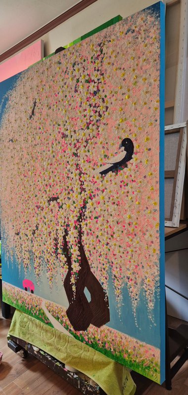 밝은 색조와 친근한 개체들로 구성된 오설 작가의 그림은 한눈에 경쾌하고 사랑스러운 느낌을 줍니다. 그림을 조금 더 자세히 들여다보자면, 시원스레 뻗은 ‘선’과 두터운 터치감으로 느껴지는 ‘면’의 조화 속에서 입체적 회화의 특징이 도드라지는데요. 이렇게 반대되는 두 성질의 것을 한 작품 안에 조화롭게 그려 냄으로써 작가는 ‘이성과 감성의 조율’에 대하여 이야기하고자 합니다. 이러한 오설 작가의 작품 세계는 겨울이 있으면 여름이 있고, 불이 있으면 물이 있듯, 서로 대립된 음양의 것들이 한데 어울려 이루어진 우리의 삶을 닮았습니다. 회화 작품 활동 이외에도 시(詩)를 통해 그만의 영감을 풀어내는 작가는 ‘그림은 소리 없는 시, 시는 소리 있는 그림’이라 했던 당나라의 시인이자 화가, 왕유가 그러했듯이 작가가 들려주고픈 ‘삶’에 대한 시 한 편이 그림 속에 녹아 있습니다. 여러분도 오설 작가의 작품을 통해 그가 소리 없이 읊는 시 한 구절을 감상해 보시기 바랍니다.