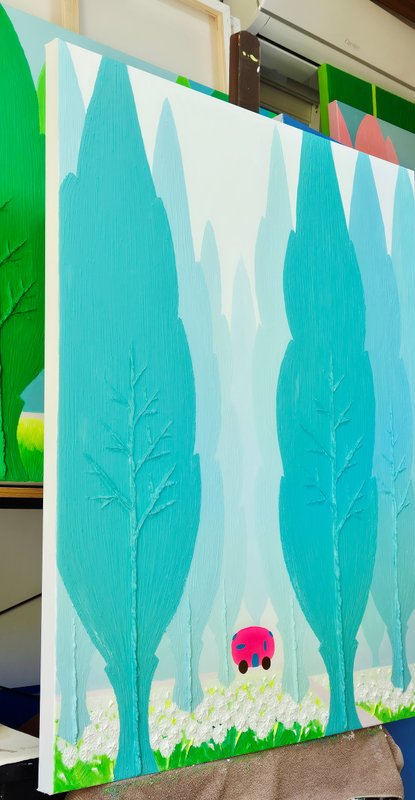 밝은 색조와 친근한 개체들로 구성된 오설 작가의 그림은 한눈에 경쾌하고 사랑스러운 느낌을 줍니다. 그림을 조금 더 자세히 들여다보자면, 시원스레 뻗은 ‘선’과 두터운 터치감으로 느껴지는 ‘면’의 조화 속에서 입체적 회화의 특징이 도드라지는데요. 이렇게 반대되는 두 성질의 것을 한 작품 안에 조화롭게 그려 냄으로써 작가는 ‘이성과 감성의 조율’에 대하여 이야기하고자 합니다. 이러한 오설 작가의 작품 세계는 겨울이 있으면 여름이 있고, 불이 있으면 물이 있듯, 서로 대립된 음양의 것들이 한데 어울려 이루어진 우리의 삶을 닮았습니다. 회화 작품 활동 이외에도 시(詩)를 통해 그만의 영감을 풀어내는 작가는 ‘그림은 소리 없는 시, 시는 소리 있는 그림’이라 했던 당나라의 시인이자 화가, 왕유가 그러했듯이 작가가 들려주고픈 ‘삶’에 대한 시 한 편이 그림 속에 녹아 있습니다. 여러분도 오설 작가의 작품을 통해 그가 소리 없이 읊는 시 한 구절을 감상해 보시기 바랍니다.