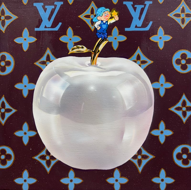 서민지 작가의 작품에는 많은 상징들이 한 화면에 등장합니다. 생명력의 원천과 결실을 의미하는 사과의 꼭지가 감상자를 정면으로 응시하고, 나비, 왕관, 하트 등의 모양으로 다이아몬드가 장식되어 성공의 욕망을 상징하며 반짝이고 있습니다. 서민지 작가의 작품은 비현실적이고 난해한 장면으로 보일 수 있지만, 도리어 사람들이 더욱 확실한 삶의 목적을 향해 나아갈 수 있도록 욕망을 발견해 내는 동기와 밝은 에너지를 선사하고 있습니다. 반짝이는 다이아몬드는 이제 막 성장하기 시작한 '신예'로서의 샛별을 의미하며, 사람들의 마음속 욕망을 실현하기를 바라는 응원의 메시지를 전하고 있습니다. 서민지 작가의 다즐링 애플은, 현대인의 반복적인 삶의 공간 안에서 화려한 조명과 같은 변화와 성취의 에너지를 선사할 것입니다.