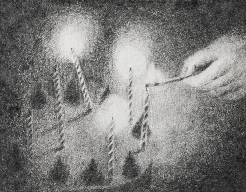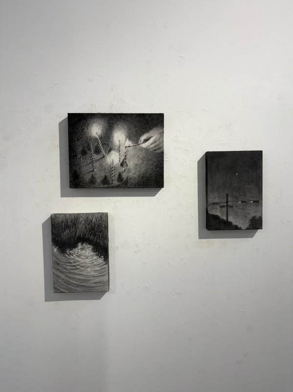 김영서 작가는 동심의 기억을 흑백의 내러티브 기록으로 표현하여 풋풋하고 순수했던 순간들을 흐릿한 현재로 불러들인다. 그는 아스라한 기억의 조각들을 엮어, 멀리서 바라봤던 혹은 꿈속에서 떠올린 듯한 장면으로 드러낸다. 친구들과 삼삼오오 모여 불꽃놀이를 하던 즐거움, 가만히 들판에 앉아 맞이하던 바람과 공기의 감각은 마치 투명한 풍선처럼, 비눗방울처럼 두둥실 떠다닌다. 작가는 옅은 먹을 여러 번 쌓아 올리는 적묵법(積墨法)을 사용하여 순수에 대한 그리움과 애틋함을 안개가 드리워진 듯이 표현하고 있다. 이처럼 김영서 작가가 재현하는 순간은 누구나 간직하고 있지만 흐릿한 기억의 잔상에서 비롯한 정서적 기록의 풍경이라 볼 수 있다.