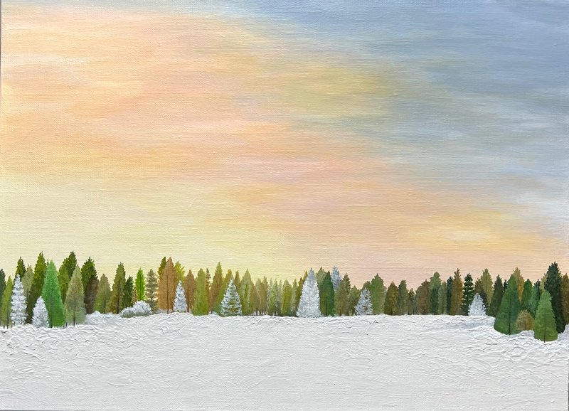 여러분은 무엇으로 삶을 기록하시나요? 란작가는 일상의 순간을 자신만의 방식으로 캔버스 위에 기록합니다. 이번 작품은 여행의 순간을 그림 그린 것입니다. 이러한 기록의 행위는 작가에게 따뜻한 위안을 주는데요, 작가는 그림을 그림으로써 지난 감정들에 대한 성찰의 시간을 가지게 되고, 이 과정이 참 행복하다고 느끼기 때문입니다. 이어, 작가는 작업의 현장에서 느낀 행복을 대중들과 나누고 싶어 합니다. 그런 따뜻한 시선이 담겨서인지 눈밭으로 뒤덮인 땅과 그 위에 가냘픈 몸의 나무가 마냥 차갑거나 외로워 보이지 않는 것 같습니다. 작품을 보고 있으면 마치 작가와 같이 여행을 다녀온 후에 그 순간을 추억하는 기분마저 듭니다. 반복되는 삶에 지쳤다면, 잠시 새하얀 풍경을 마주하며 지난날의 순간을 회상하거나 다녀온 여행 이야기를 대화로, 그림으로 혹은 글로 기록하는 시간을 가져보는 건 어떠신가요?