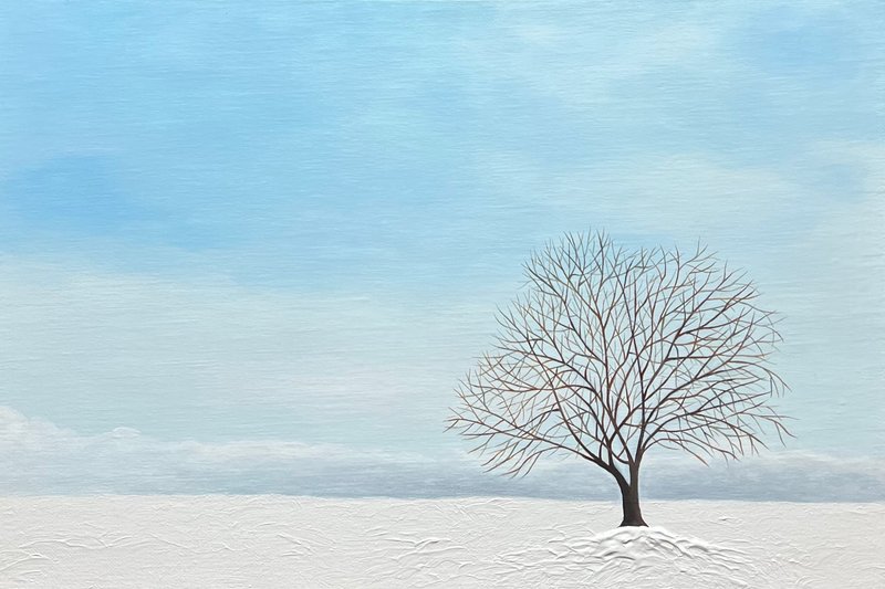 여러분은 무엇으로 삶을 기록하시나요? 란작가는 일상의 순간을 자신만의 방식으로 캔버스 위에 기록합니다. 이번 작품은 여행의 순간을 그림 그린 것입니다. 이러한 기록의 행위는 작가에게 따뜻한 위안을 주는데요, 작가는 그림을 그림으로써 지난 감정들에 대한 성찰의 시간을 가지게 되고, 이 과정이 참 행복하다고 느끼기 때문입니다. 이어, 작가는 작업의 현장에서 느낀 행복을 대중들과 나누고 싶어 합니다. 그런 따뜻한 시선이 담겨서인지 눈밭으로 뒤덮인 땅과 그 위에 가냘픈 몸의 나무가 마냥 차갑거나 외로워 보이지 않는 것 같습니다. 작품을 보고 있으면 마치 작가와 같이 여행을 다녀온 후에 그 순간을 추억하는 기분마저 듭니다. 반복되는 삶에 지쳤다면, 잠시 새하얀 풍경을 마주하며 지난날의 순간을 회상하거나 다녀온 여행 이야기를 대화로, 그림으로 혹은 글로 기록하는 시간을 가져보는 건 어떠신가요?