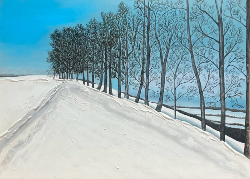 여러분은 무엇으로 삶을 기록하시나요? 란작가는 일상의 순간을 자신만의 방식으로 캔버스 위에 기록합니다. 이번 작품은 여행의 순간을 그림 그린 것입니다. 이러한 기록의 행위는 작가에게 따뜻한 위안을 주는데요, 작가는 그림을 그림으로써 지난 감정들에 대한 성찰의 시간을 가지게 되고, 이 과정이 참 행복하다고 느끼기 때문입니다. 이어, 작가는 작업의 현장에서 느낀 행복을 대중들과 나누고 싶어 합니다. 그런 따뜻한 시선이 담겨서인지 눈밭으로 뒤덮인 땅과 그 위에 가냘픈 몸의 나무가 마냥 차갑거나 외로워 보이지 않는 것 같습니다. 작품을 보고 있으면 마치 작가와 같이 여행을 다녀온 후에 그 순간을 추억하는 기분마저 듭니다. 반복되는 삶에 지쳤다면, 잠시 새하얀 풍경을 마주하며 지난날의 순간을 회상하거나 다녀온 여행 이야기를 대화로, 그림으로 혹은 글로 기록하는 시간을 가져보는 건 어떠신가요?