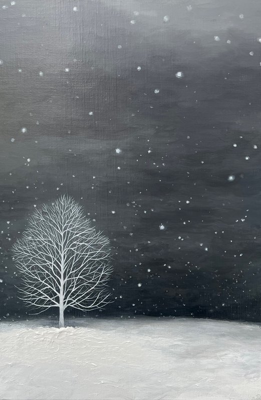 여러분은 무엇으로 삶을 기록하시나요? 란작가는 일상의 순간을 자신만의 방식으로 캔버스 위에 기록합니다. 이번 작품은 여행의 순간을 그림 그린 것입니다. 이러한 기록의 행위는 작가에게 따뜻한 위안을 주는데요, 작가는 그림을 그림으로써 지난 감정들에 대한 성찰의 시간을 가지게 되고, 이 과정이 참 행복하다고 느끼기 때문입니다. 이어, 작가는 작업의 현장에서 느낀 행복을 대중들과 나누고 싶어 합니다. 그런 따뜻한 시선이 담겨서인지 눈밭으로 뒤덮인 땅과 그 위에 가냘픈 몸의 나무가 마냥 차갑거나 외로워 보이지 않는 것 같습니다. 작품을 보고 있으면 마치 작가와 같이 여행을 다녀온 후에 그 순간을 추억하는 기분마저 듭니다. 반복되는 삶에 지쳤다면, 잠시 새하얀 풍경을 마주하며 지난날의 순간을 회상하거나 다녀온 여행 이야기를 대화로, 그림으로 혹은 글로 기록하는 시간을 가져보는 건 어떠신가요?