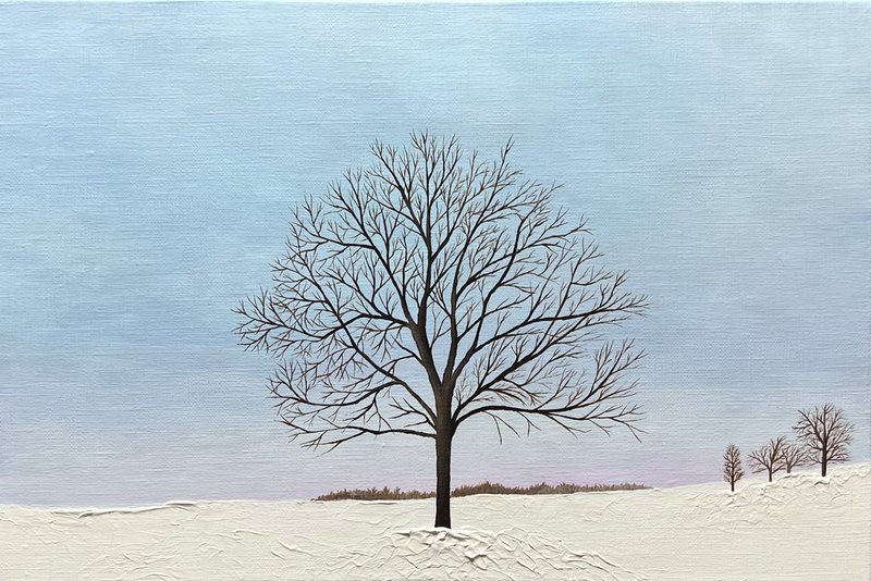 여러분은 무엇으로 삶을 기록하시나요? 란작가는 일상의 순간을 자신만의 방식으로 캔버스 위에 기록합니다. 이번 작품은 여행의 순간을 그림 그린 것입니다. 이러한 기록의 행위는 작가에게 따뜻한 위안을 주는데요, 작가는 그림을 그림으로써 지난 감정들에 대한 성찰의 시간을 가지게 되고, 이 과정이 참 행복하다고 느끼기 때문입니다. 이어, 작가는 작업의 현장에서 느낀 행복을 대중들과 나누고 싶어 합니다. 그런 따뜻한 시선이 담겨서인지 눈밭으로 뒤덮인 땅과 그 위에 가냘픈 몸의 나무가 마냥 차갑거나 외로워 보이지 않는 것 같습니다. 작품을 보고 있으면 마치 작가와 같이 여행을 다녀온 후에 그 순간을 추억하는 기분마저 듭니다. 반복되는 삶에 지쳤다면, 잠시 새하얀 풍경을 마주하며 지난날의 순간을 회상하거나 다녀온 여행 이야기를 대화로, 그림으로 혹은 글로 기록하는 시간을 가져보는 건 어떠신가요?