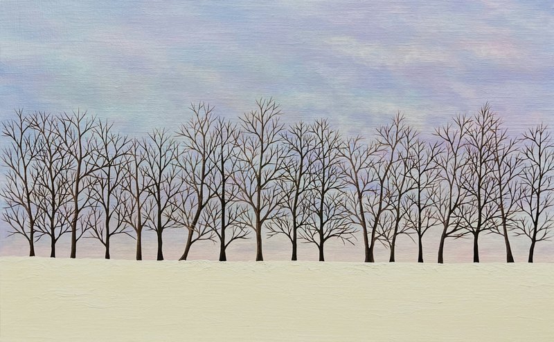 여러분은 무엇으로 삶을 기록하시나요? 란작가는 일상의 순간을 자신만의 방식으로 캔버스 위에 기록합니다. 이번 작품은 여행의 순간을 그림 그린 것입니다. 이러한 기록의 행위는 작가에게 따뜻한 위안을 주는데요, 작가는 그림을 그림으로써 지난 감정들에 대한 성찰의 시간을 가지게 되고, 이 과정이 참 행복하다고 느끼기 때문입니다. 이어, 작가는 작업의 현장에서 느낀 행복을 대중들과 나누고 싶어 합니다. 그런 따뜻한 시선이 담겨서인지 눈밭으로 뒤덮인 땅과 그 위에 가냘픈 몸의 나무가 마냥 차갑거나 외로워 보이지 않는 것 같습니다. 작품을 보고 있으면 마치 작가와 같이 여행을 다녀온 후에 그 순간을 추억하는 기분마저 듭니다. 반복되는 삶에 지쳤다면, 잠시 새하얀 풍경을 마주하며 지난날의 순간을 회상하거나 다녀온 여행 이야기를 대화로, 그림으로 혹은 글로 기록하는 시간을 가져보는 건 어떠신가요?